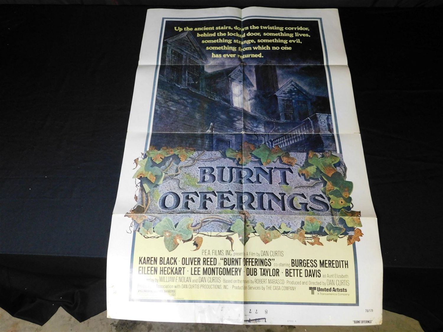 Original Movie Poster – Burnt Offerings (Directed by Dark Shadows Creator Dan Curtis). Has some water damage and a few tears at the creases. Measures 41" tall x 27" wide. Please read the terms and conditions. This sale will be broadcast live on sale day with full descriptions of each lot being sold. All items MUST be paid for within 24 HOURS of the sale. Anyone who has not paid within 24 hours will have a dispute opened against them and will not be able to bid at future sales. All items in this sale are local pick up only, or shipping via UPS store in Kendall Park, NJ.. If you need your items shipped, we will send your items to the UPS store in Kendall Park, NJ . They will pack it and ship it to you and you will pay them separately and directly. Please call them to get a quote before bidding. Their phone number is 732-422-7242. If you are picking your items up you must contact us NO LATER than 24 hours after the sale to schedule an appointment to pick up. Pick up dates are Thursday, Friday, Saturday, and Monday ONLY, and are BY APPOINTMENT ONLY!! After Monday, if you have not picked up your items, they will be disposed of.