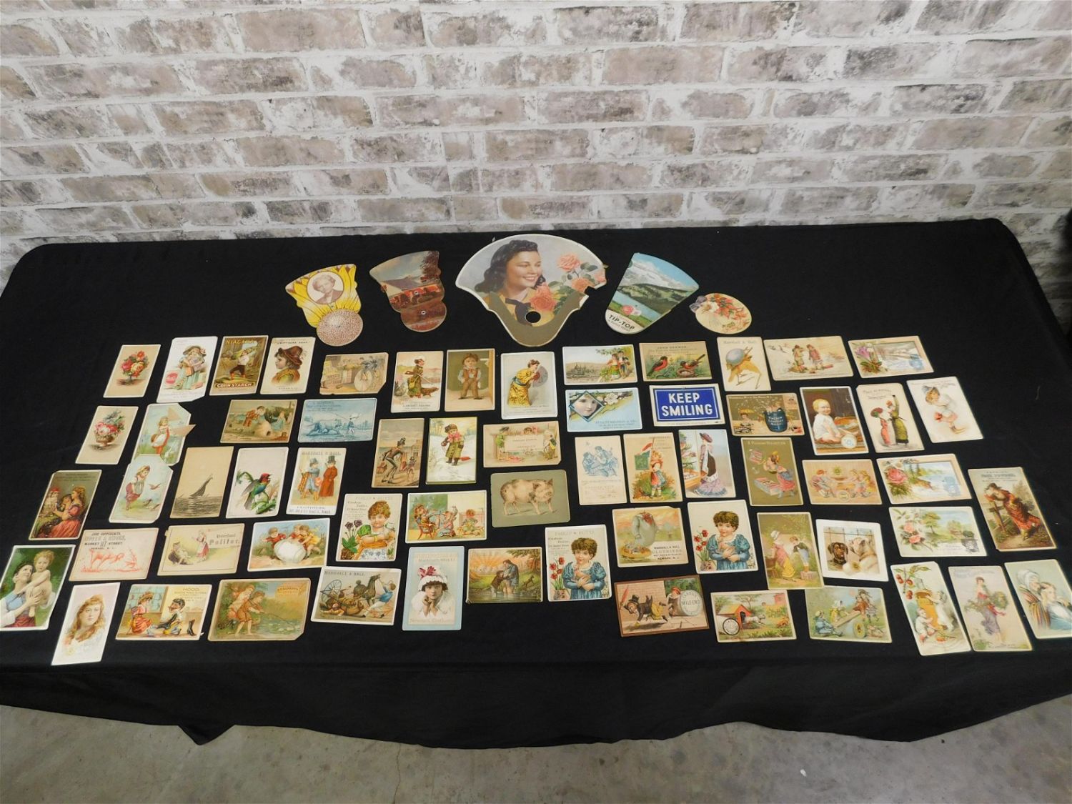 Lot of Advertising Fans and Victorian Calling Card Advertisements. All invoices must be paid within 24 hours of the sale. All items are shipped either in house via USPS/UPS or will be sent to the Kendall Park UPS store to be packed and shipped. All shipping is billed separately. You will be contacted via email after the invoice is paid advising you on the shipping method. All in house shipping will have a $10 handling fee added per item. Local pickups are in our South Brunswick location on Friday, Saturday and Monday ONLY! All pickups are by appointment only. Any condition issues will be listed in the description. Please read the terms for full information.