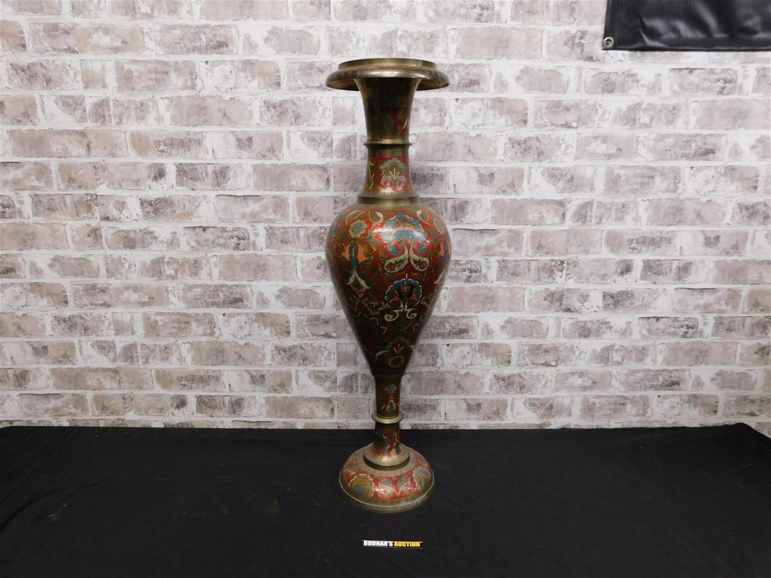 Brass and Enamel Tall Vase. Measures approx. 30.5" tall x 9.5" at largest width. All invoices must be paid within 24 hours of the sale. All items are shipped either in house via USPS/UPS or will be sent to the Kendall Park UPS store to be packed and shipped. All shipping is billed separately. You will be contacted via email after the invoice is paid advising you on the shipping method. All in house shipping will have a $10 handling fee added per item. Local pickups are in our South Brunswick location on Friday, Saturday and Monday ONLY! All pickups are by appointment only. Any condition issues will be listed in the description. Please read the terms for full information.