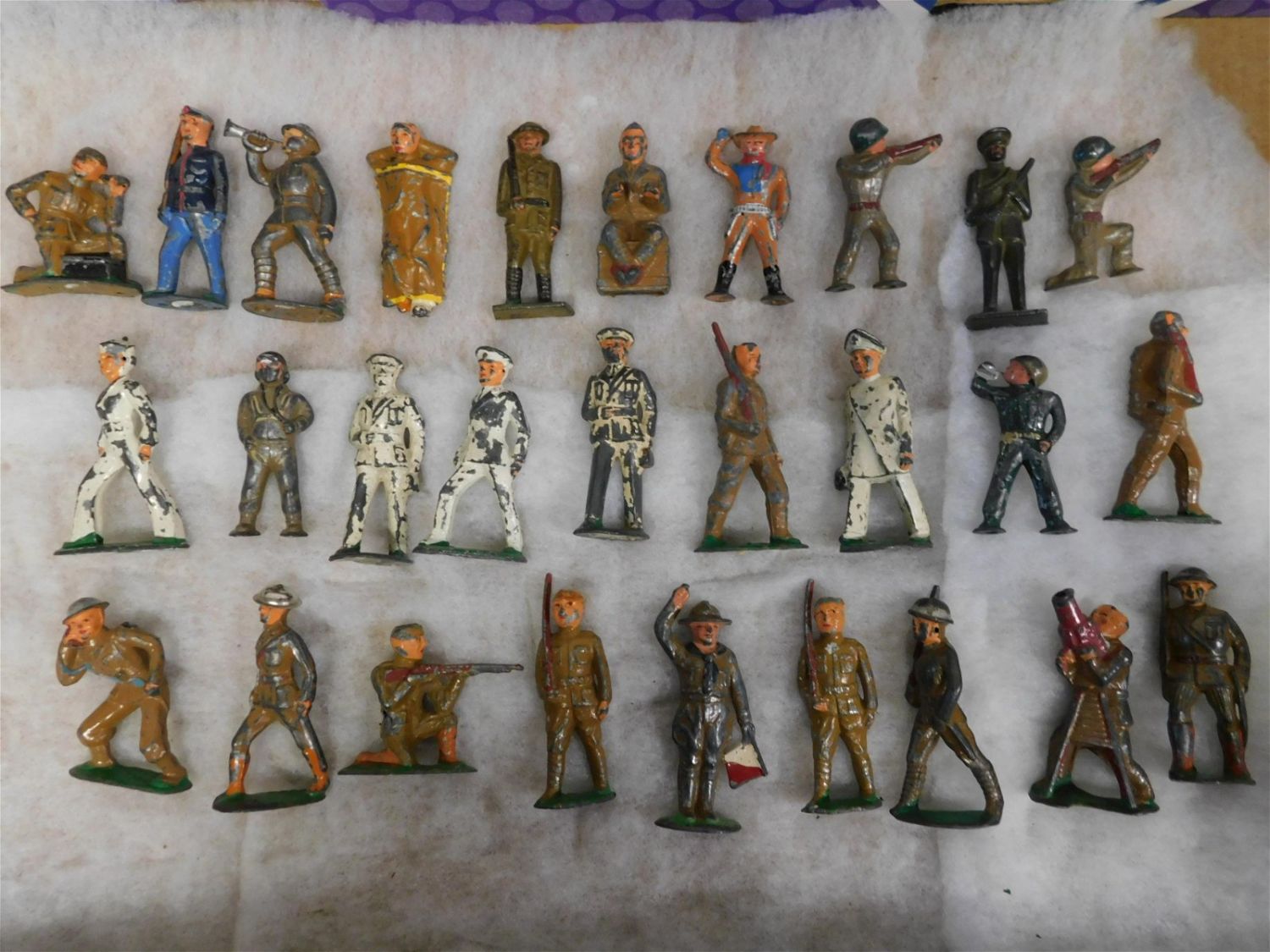Lot of 25+ Vintage Metal Toy Soldiers. Some signed Barclay. Measures approx. between 2" – 4" tall. All invoices must be paid within 24 hours of the sale. All items are shipped either in house via USPS/UPS or will be sent to the Kendall Park UPS store to be packed and shipped. All shipping is billed separately. You will be contacted via email after the invoice is paid advising you on the shipping method. All in house shipping will have a $10 handling fee added per item. Local pickups are in our South Brunswick location on Friday, Saturday and Monday ONLY! All pickups are by appointment only. Any condition issues will be listed in the description. Please read the terms for full information.