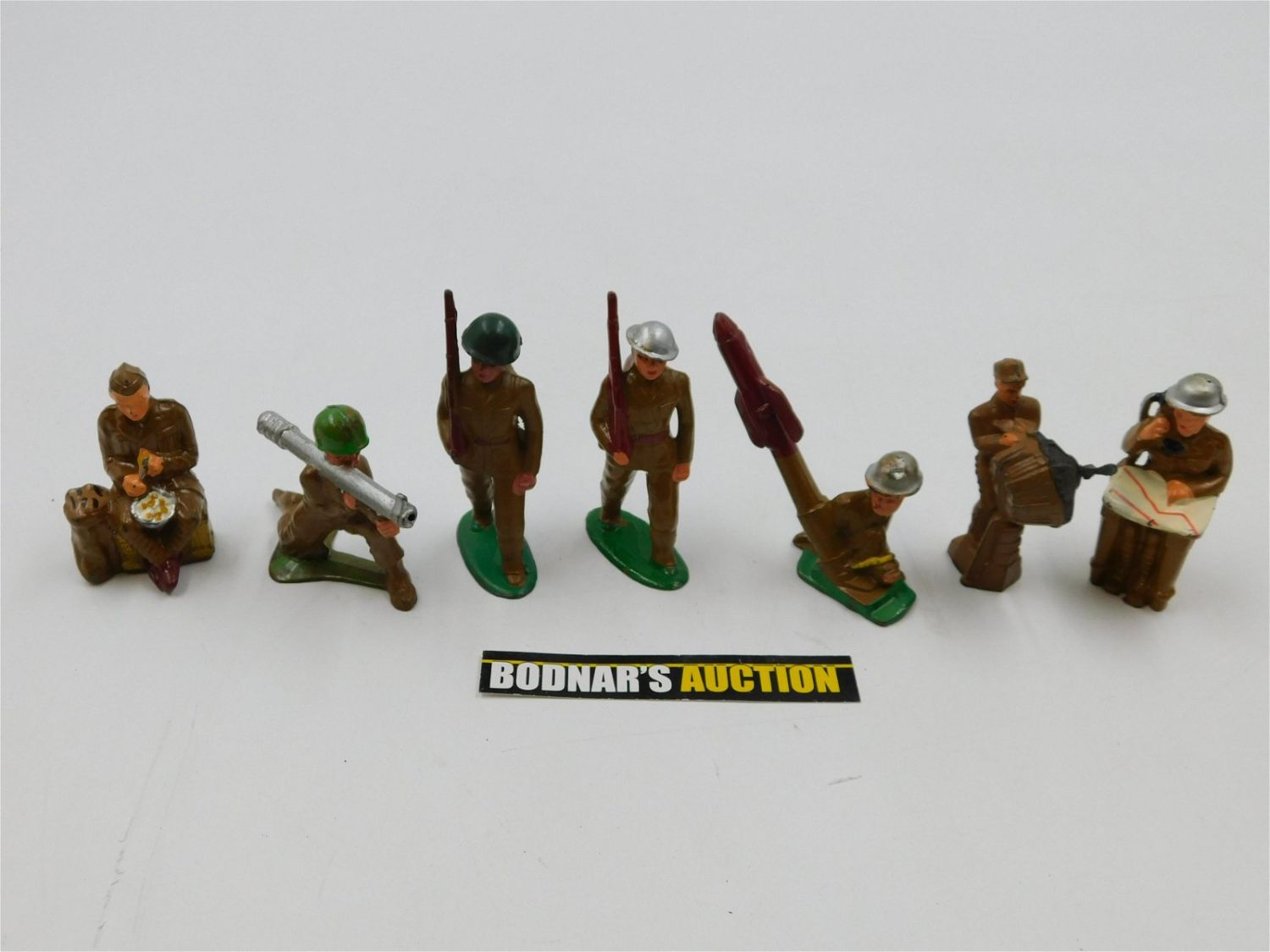 Lot of 7 Vintage Metal Toy Soldiers – Mostly Manoil including Seated Soldier Talking on Telephone, #792 Aviator with Propeller Engine, M110 Rocket Launcher, (2) #777 Marching Soldier, Bazooka Launcher, and B111 Potato Peeler. Measures approx. 2.5" – 3.5" tall. All invoices must be paid within 24 hours of the sale. All items are shipped either in house via USPS/UPS or will be sent to the Kendall Park UPS store to be packed and shipped. All shipping is billed separately. You will be contacted via email after the invoice is paid advising you on the shipping method. All in house shipping will have a $10 handling fee added per item. Local pickups are in our South Brunswick location on Friday, Saturday and Monday ONLY! All pickups are by appointment only. Any condition issues will be listed in the description. Please read the terms for full information.