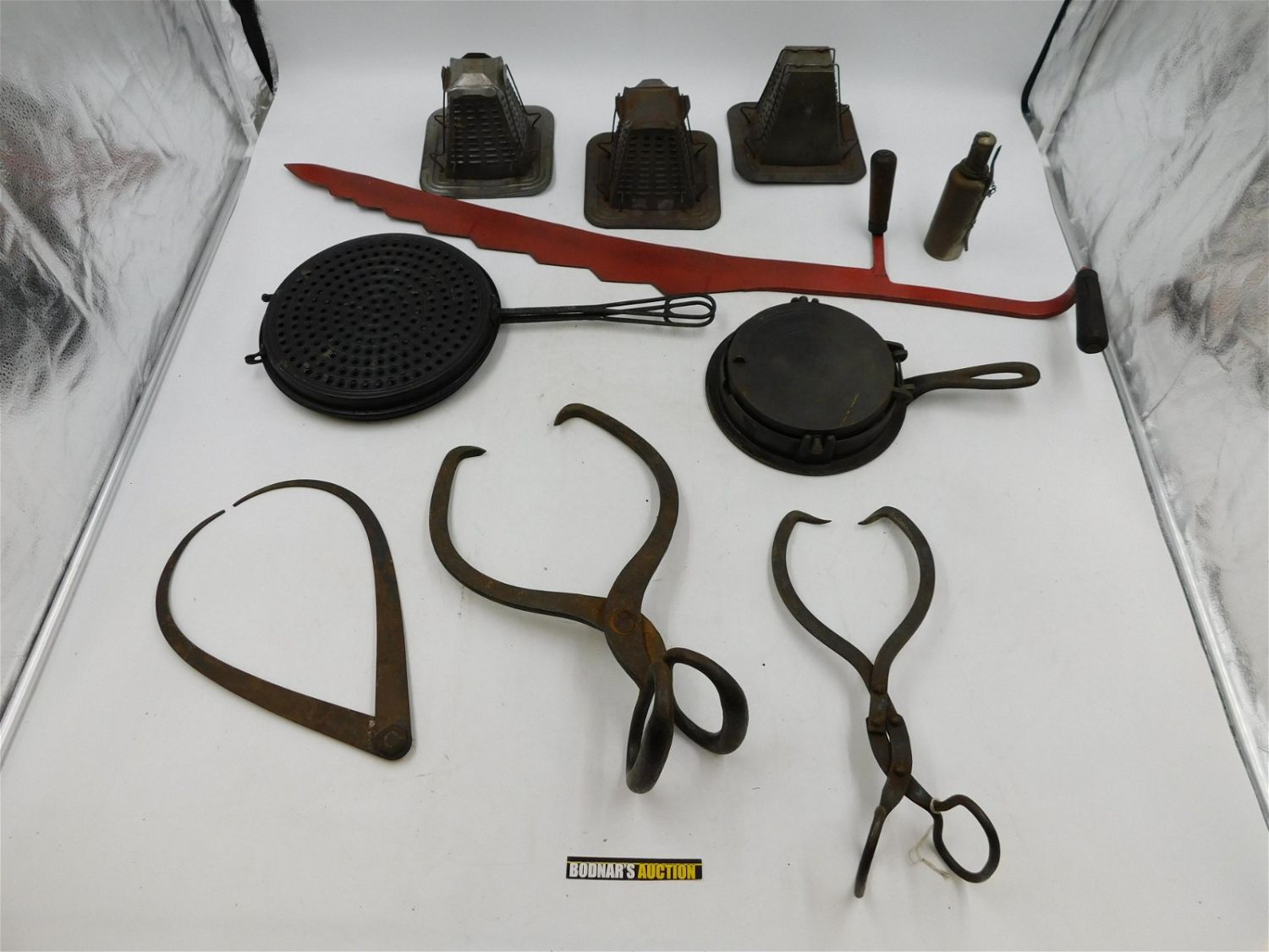 Large Lot of Primitives and Kitchen Items including Waffle Maker, Ice Tongs, Ice Saw, Graters and More. All invoices must be paid within 24 hours of the sale. All items are shipped either in house via USPS/UPS or will be sent to the Kendall Park UPS store to be packed and shipped. All shipping is billed separately. You will be contacted via email after the invoice is paid advising you on the shipping method. All in house shipping will have a $10 handling fee added per item. Local pickups are in our South Brunswick location on Friday, Saturday and Monday ONLY! All pickups are by appointment only. Any condition issues will be listed in the description. Please read the terms for full information.