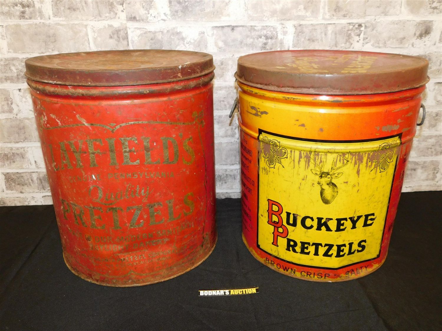 Lot of 2 Vintage Advertising Pretzel Tins including Buckeye Pretzels and Mayfield’s Pretzels. Measures approx. 14" x 13" wide. All have wear. All invoices must be paid within 24 hours of the sale. All items are shipped either in house via USPS/UPS or will be sent to the Kendall Park UPS store to be packed and shipped. All shipping is billed separately. You will be contacted via email after the invoice is paid advising you on the shipping method. All in house shipping will have a $10 handling fee added per item. Local pickups are in our South Brunswick location on Friday, Saturday and Monday ONLY! All pickups are by appointment only. Any condition issues will be listed in the description. Please read the terms for full information.