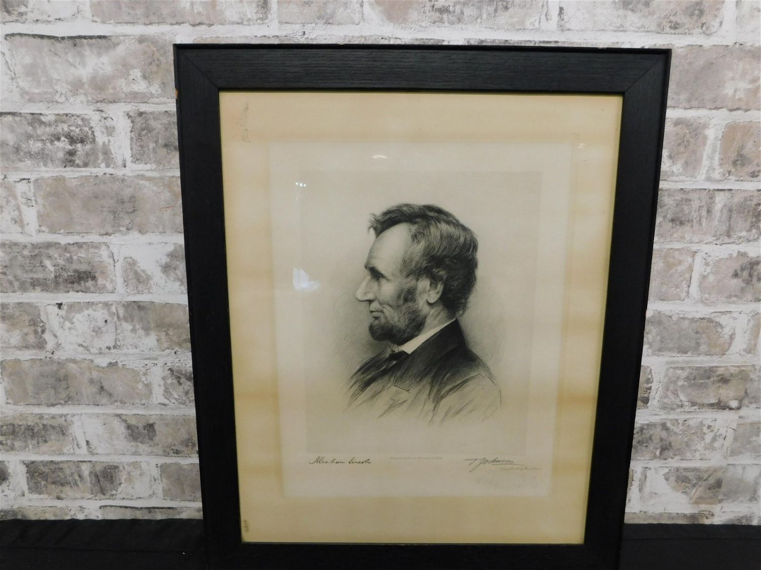 Framed Portrait of Abraham Lincoln. Marked Lower Right 1892 by Thomas Johnson. Measures approx. 22" tall x 18" wide. Please read the terms and conditions. This sale will be broadcast live on sale day with full descriptions of each lot being sold. All items MUST be paid for within 24 HOURS of the sale. Anyone who has not paid within 24 hours will have a dispute opened against them and will not be able to bid at future sales. All items in this sale are local pick up only, or shipping via UPS store in Kendall Park, NJ. If you need your items shipped, we will send your items to the UPS store in Kendall Park, NJ. They will pack it and ship it to you and you will pay them separately and directly. Please call them to get a quote before bidding. Their phone number is 732-422-7242. If you are picking your items up you must contact us NO LATER than 24 hours after the sale to schedule an appointment to pick up. Pick up dates are Thursday, Friday, Saturday, and Monday ONLY, and are BY APPOINTMENT ONLY!! After Monday, if you have not picked up your items, they will be disposed of.