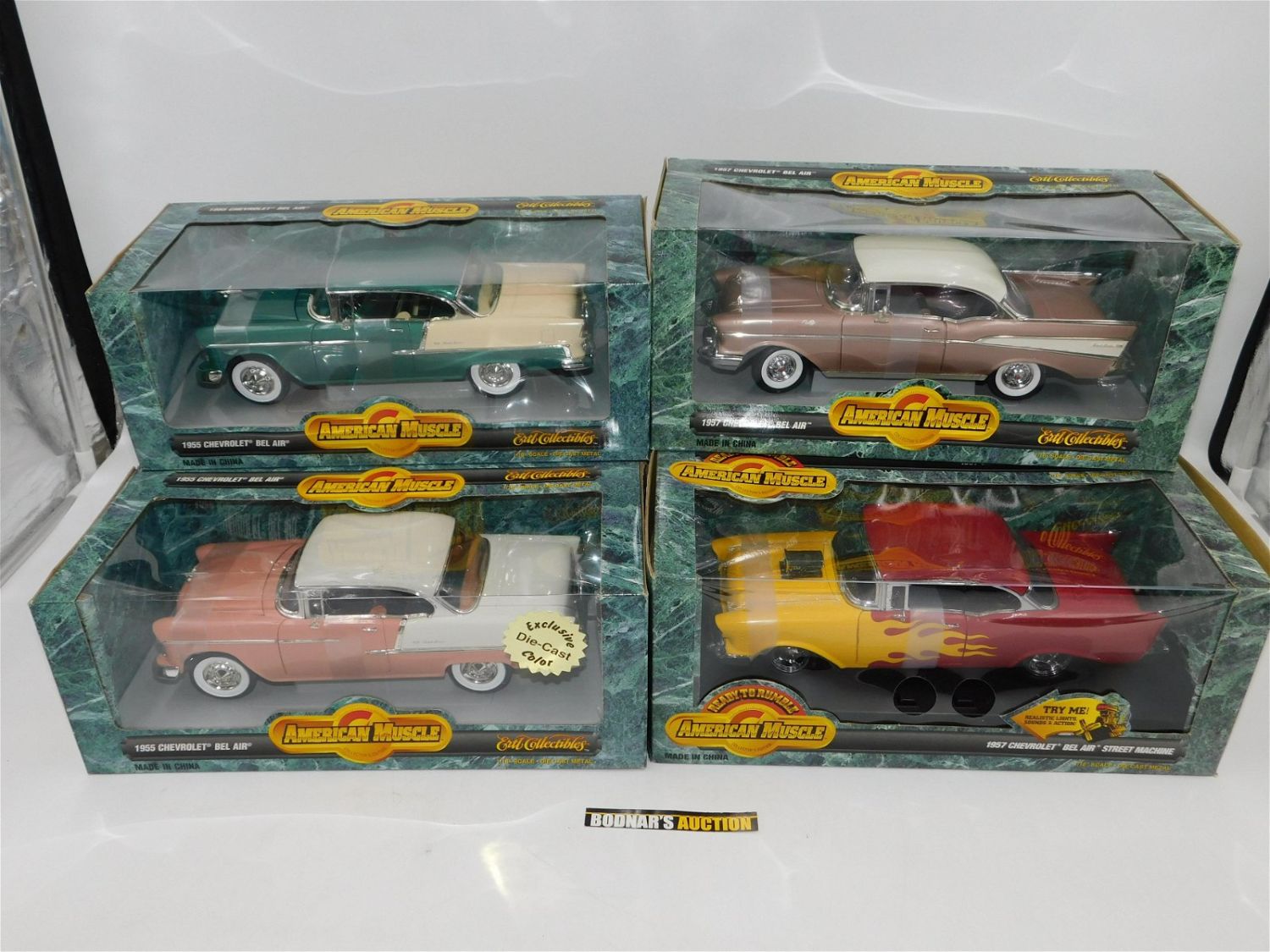 Lot of 4 American Muscle Chevrolet Bel Air Diecast Cars including (2) 1955 Chevrolet Bel Air (Green and Pink), 1957 Chevrolet Bel Air and 1957 Chevrolet Bel Air Street Machine. 1:18 Scale Diecast. Comes in Original Box. All invoices must be paid within 24 hours of the sale. All items are shipped USPS or UPS and will be billed separately. A $10 handling fee is added to the shipping price per lot. Local pickups are in our South Brunswick location on Friday, Saturday and Monday ONLY! All pickups are by appointment only. Any condition issues will be listed in the description. Please read the terms for full information.