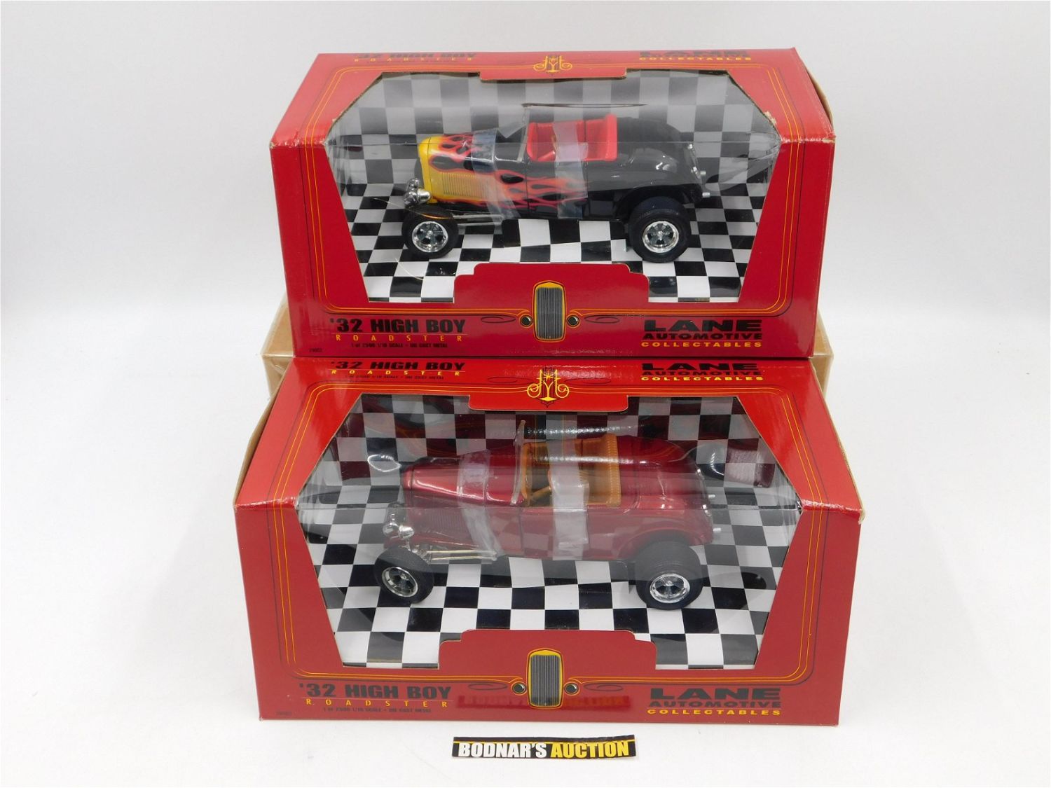 Lot of 2 Lane Automotive Collectibles ’32 High Boy Roadsters – Black with Flames and Red. 1:18 Scale Diecast. Comes in Original Box. All invoices must be paid within 24 hours of the sale. All items are shipped USPS or UPS and will be billed separately. A $10 handling fee is added to the shipping price per lot. Local pickups are in our South Brunswick location on Friday, Saturday and Monday ONLY! All pickups are by appointment only. Any condition issues will be listed in the description. Please read the terms for full information.