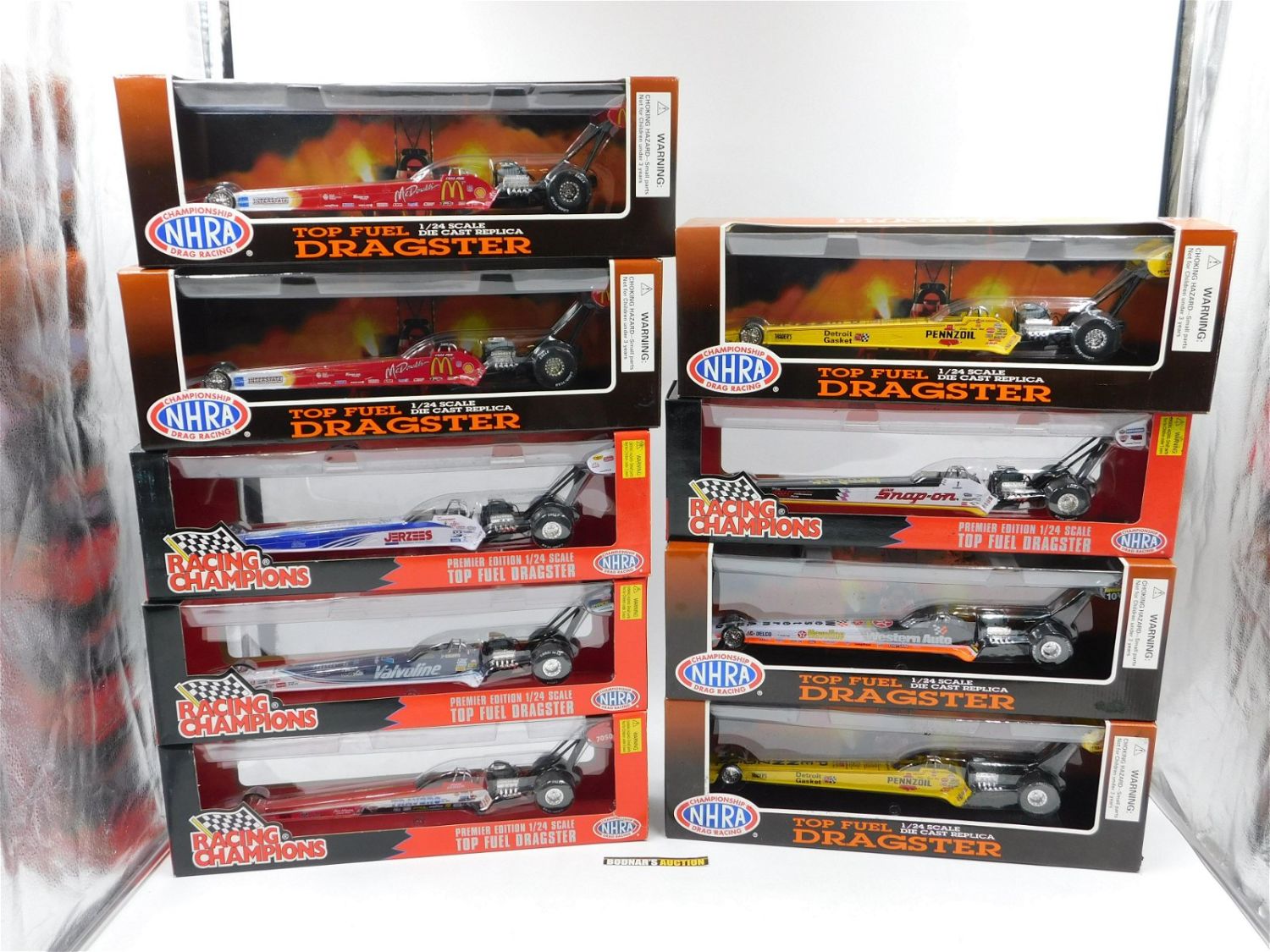 Lot of 9 Racing Champions 1:24 Scale Top Fuel Dragsters. All in Original Boxes. All invoices must be paid within 24 hours of the sale. All items are shipped USPS or UPS and will be billed separately. A $10 handling fee is added to the shipping price per lot. Local pickups are in our South Brunswick location on Friday, Saturday and Monday ONLY! All pickups are by appointment only. Any condition issues will be listed in the description. Please read the terms for full information.