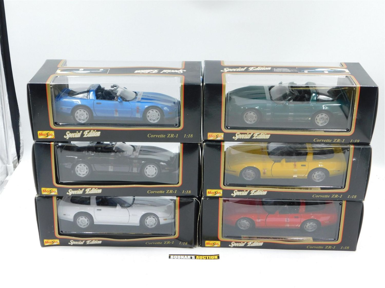 Lot of 6 Maisto Corvette Diecast Cars. All are Corvette ZR-1 – White (Side Box Damage), Red, Yellow, Blue, Blue/Green, and Black. All 1:18 Scale in Original Box. All invoices must be paid within 24 hours of the sale. All items are shipped USPS or UPS and will be billed separately. A $10 handling fee is added to the shipping price per lot. Local pickups are in our South Brunswick location on Friday, Saturday and Monday ONLY! All pickups are by appointment only. Any condition issues will be listed in the description. Please read the terms for full information.
