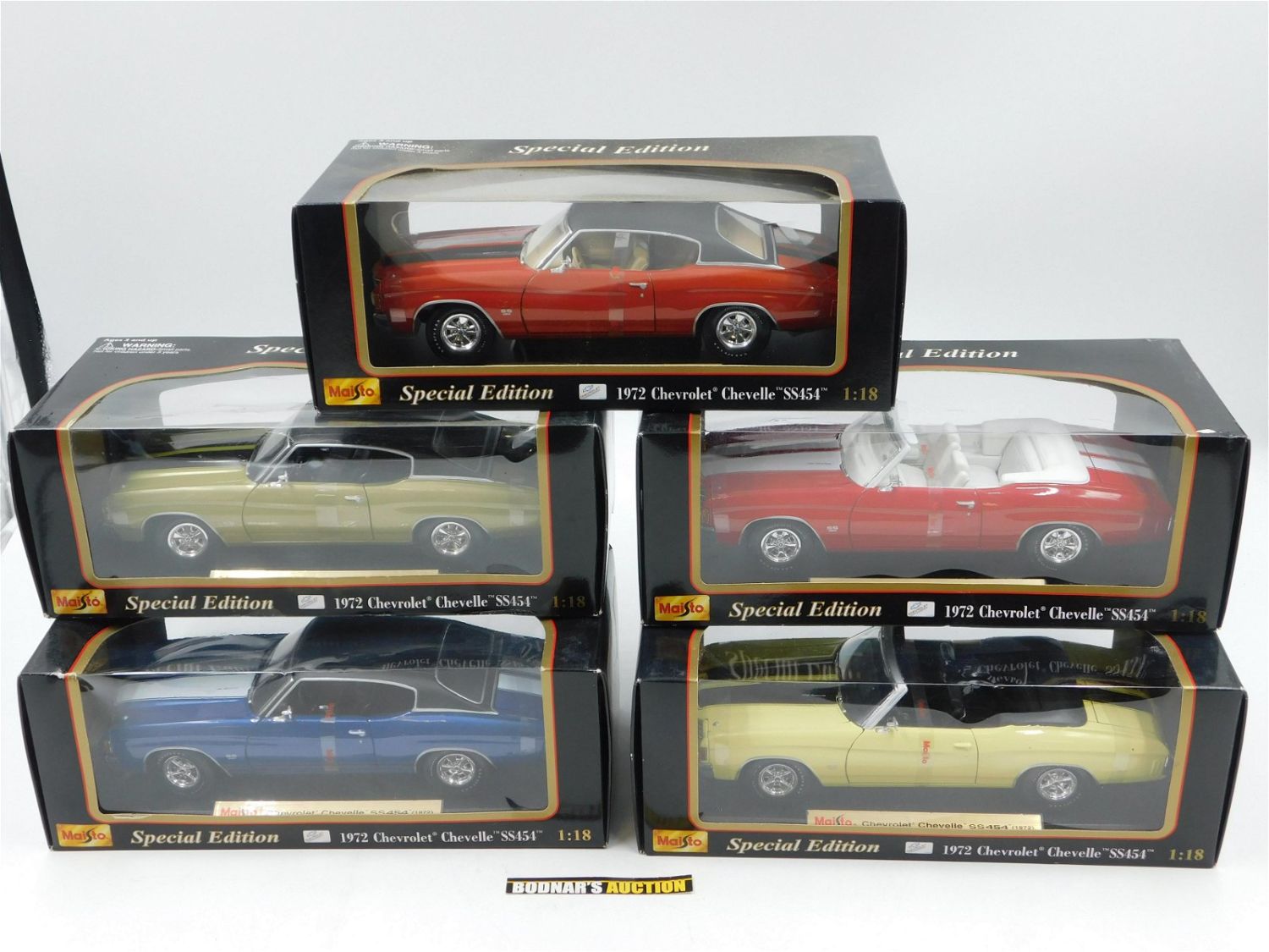 Lot of 5 Maisto Chevy Chevelle Diecast Cars. All are 1972 Chevrolet Chevelle SS454 in Gold, Blue, Orange, Red and Yellow. All 1:18 Scale in Original Box. All invoices must be paid within 24 hours of the sale. All items are shipped USPS or UPS and will be billed separately. A $10 handling fee is added to the shipping price per lot. Local pickups are in our South Brunswick location on Friday, Saturday and Monday ONLY! All pickups are by appointment only. Any condition issues will be listed in the description. Please read the terms for full information.