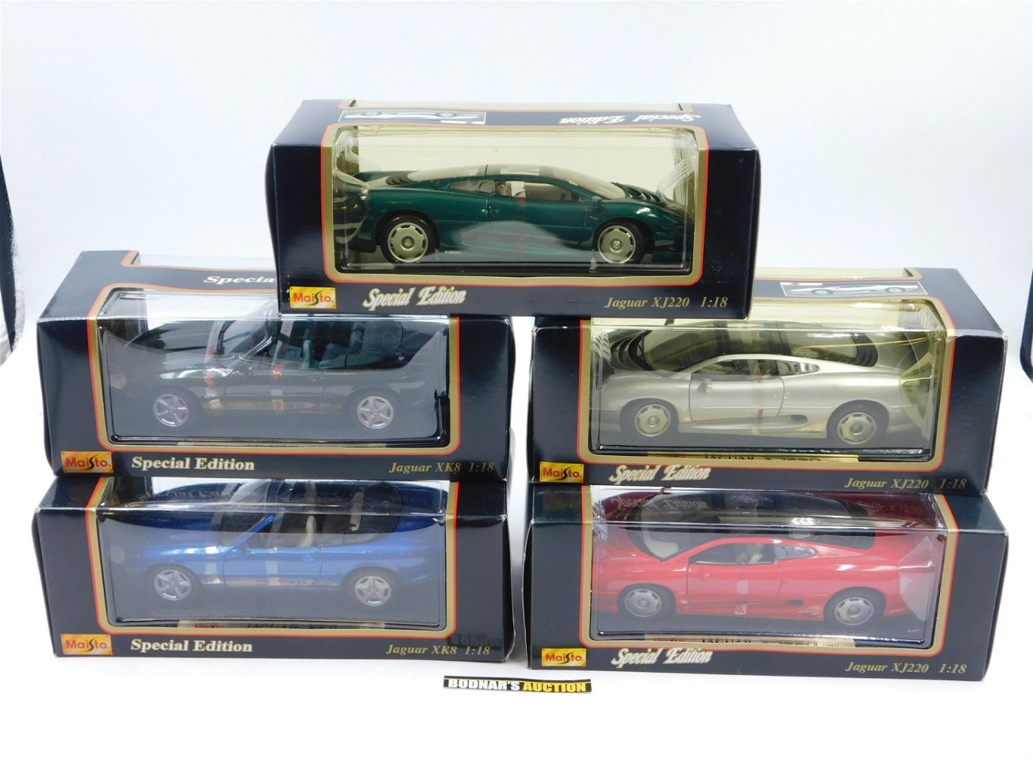 Lot of 5 Maisto Jaguar Diecast Cars. Including (3) Jaguar XJ220 (Green, Red and Silver) and (2) Jaguar XK8 (Green and Blue). All 1:18 Scale in Original Box. All invoices must be paid within 24 hours of the sale. All items are shipped USPS or UPS and will be billed separately. A $10 handling fee is added to the shipping price per lot. Local pickups are in our South Brunswick location on Friday, Saturday and Monday ONLY! All pickups are by appointment only. Any condition issues will be listed in the description. Please read the terms for full information.