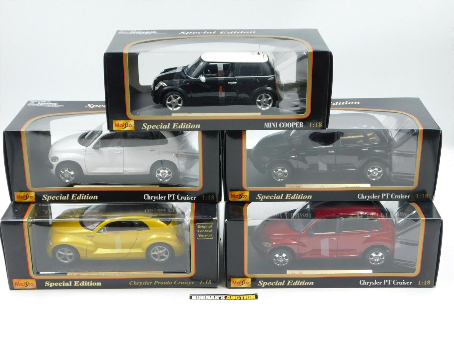Lot of 5 Maisto Diecast Cars. Including (3) Chrysler PT Cruiser (Black, Red, and White), Chrysler Pronto Cruizer (Original Concept Version), and Mini Cooper. All 1:18 Scale in Original Box. All invoices must be paid within 24 hours of the sale. All items are shipped USPS or UPS and will be billed separately. A $10 handling fee is added to the shipping price per lot. Local pickups are in our South Brunswick location on Friday, Saturday and Monday ONLY! All pickups are by appointment only. Any condition issues will be listed in the description. Please read the terms for full information.