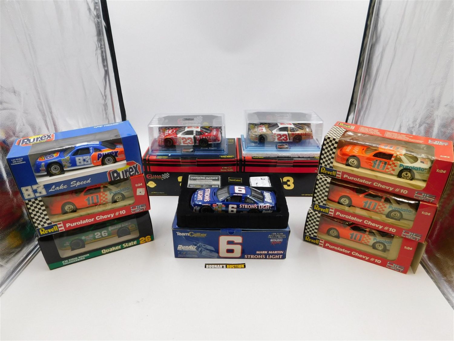 Lot of 9 NASCAR 1:24 Scale Diecast. Including (4) Revell Purolator Chevy #10, Revell #26 Steve Kinser Thunderbird, GMP Lake Speed #83, (2) Team Caliber Jimmy Spencer #23 (Red and Gold), and Team Caliber Mark Martin Stroh’s Light – Owners Series, . All invoices must be paid within 24 hours of the sale. All items are shipped USPS or UPS and will be billed separately. A $10 handling fee is added to the shipping price per lot. Local pickups are in our South Brunswick location on Friday, Saturday and Monday ONLY! All pickups are by appointment only. Any condition issues will be listed in the description. Please read the terms for full information.