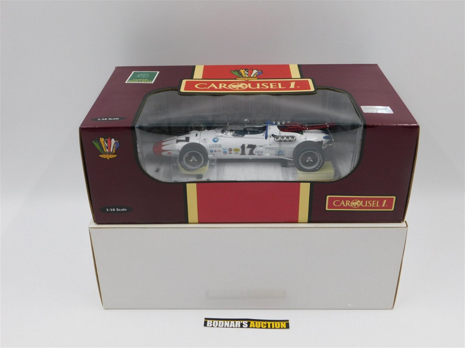 Carousel 1 Lotus 38 1965 Indianapolis 500 #17 Dan Gurney/All American Racers. 1:18 Scale Diecast. Comes in Original Box. All invoices must be paid within 24 hours of the sale. All items are shipped USPS or UPS and will be billed separately. A $10 handling fee is added to the shipping price per lot. Local pickups are in our South Brunswick location on Friday, Saturday and Monday ONLY! All pickups are by appointment only. Any condition issues will be listed in the description. Please read the terms for full information.