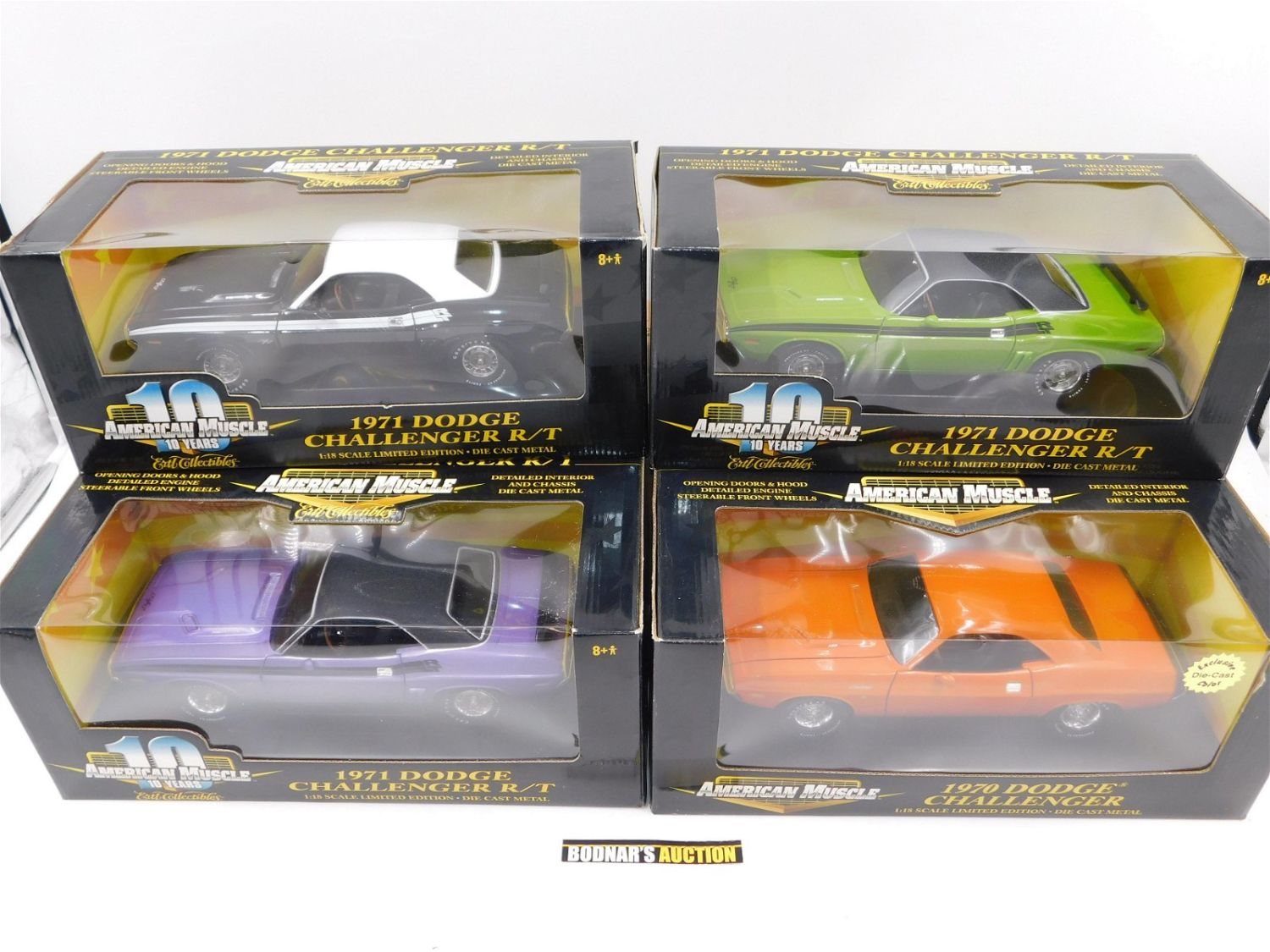 Lot of 4 American Muscle Dodge Challenger Diecast Cars including (3) 1971 Challenger R/T (Green, Black and Purple) and 1970 Dodge Challenger – Exclusive Color. All Limited Edition 1:18 Scale Diecast. Comes in Original Box. All invoices must be paid within 24 hours of the sale. All items are shipped USPS or UPS and will be billed separately. A $10 handling fee is added to the shipping price per lot. Local pickups are in our South Brunswick location on Friday, Saturday and Monday ONLY! All pickups are by appointment only. Any condition issues will be listed in the description. Please read the terms for full information.