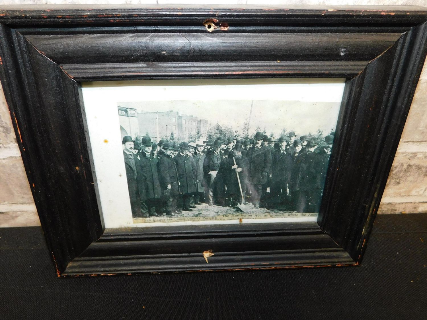 Framed Copy of the Ground Breaking Ceremony for Huntington Ave Grounds on March 12, 1901. Hi-Hi Dixwell holds shovel. All lots in this auction came from the Historic McGreevy’s Sports Bar in Boston Massachusetts. These items were hanging or displayed in the bar until the closure of the bar in 2020. All items in this sale are copies from the original archives from the Boston Public Library unless noted in the description as "original". Please read the terms and conditions. This sale will be broadcast live on sale day with full descriptions of each lot being sold, as well as video feed of each lot. All items MUST be paid for within 24 HOURS of the sale. Anyone who has not paid within 24 hours will have a dispute opened against them and will not be able to bid at future sales. All items in this sale are local pick up only, or shipping via UPS store in Kendall Park, NJ.. If you need your items shipped, we will send your items to the UPS store in Kendall Park, NJ . They will pack it and ship it to you and you will pay them separately and directly. Please call them to get a quote before bidding. Their phone number is 732-422-7242. If you are picking your items up you must contact us NO LATER than 24 hours after the sale to schedule an appointment to pick up. Pick up dates are Thursday, Friday, Saturday, and Monday ONLY, and are BY APPOINTMENT ONLY!! After Monday, if you have not picked up your items, they will be disposed of.