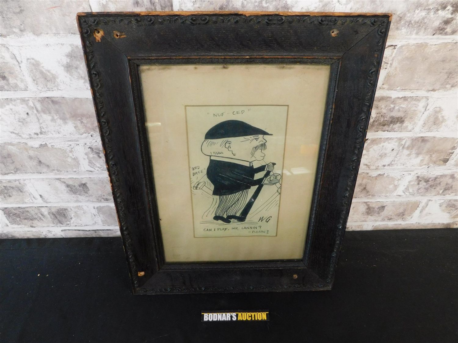 Framed Copy of Wallace Goldsmith Cartoon of Nuf Ced McGreevy – 1915. Measures 16" tall x 12.5" wide. All lots in this auction came from the Historic McGreevy’s Sports Bar in Boston Massachusetts. These items were hanging or displayed in the bar until the closure of the bar in 2020. All items in this sale are copies from the original archives from the Boston Public Library unless noted in the description as "original". Please read the terms and conditions. This sale will be broadcast live on sale day with full descriptions of each lot being sold, as well as video feed of each lot. All items MUST be paid for within 24 HOURS of the sale. Anyone who has not paid within 24 hours will have a dispute opened against them and will not be able to bid at future sales. All items in this sale are local pick up only, or shipping via UPS store in Kendall Park, NJ.. If you need your items shipped, we will send your items to the UPS store in Kendall Park, NJ . They will pack it and ship it to you and you will pay them separately and directly. Please call them to get a quote before bidding. Their phone number is 732-422-7242. If you are picking your items up you must contact us NO LATER than 24 hours after the sale to schedule an appointment to pick up. Pick up dates are Thursday, Friday, Saturday, and Monday ONLY, and are BY APPOINTMENT ONLY!! After Monday, if you have not picked up your items, they will be disposed of.