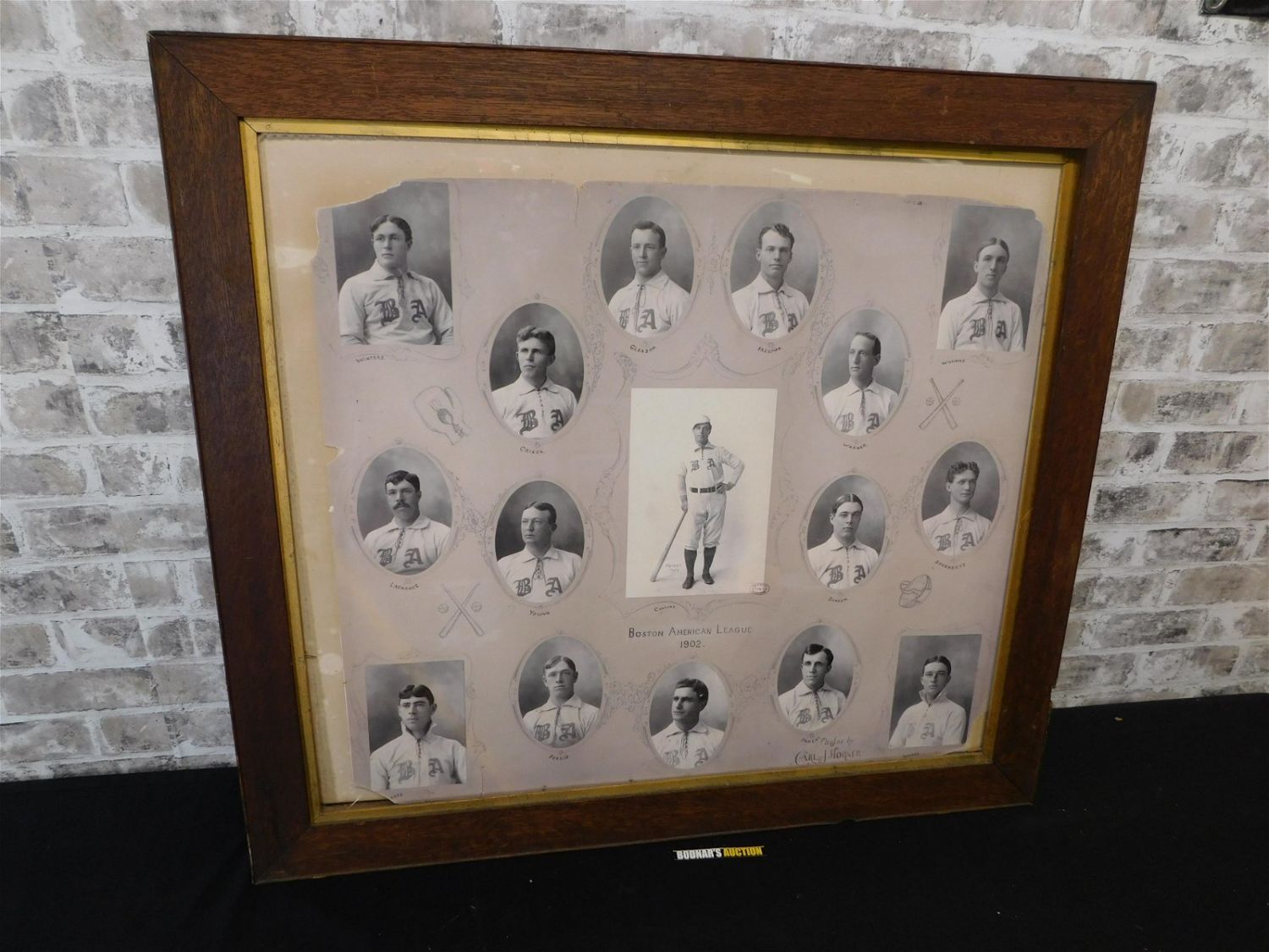 Framed Copy of Horner Team Composite of the 1902 Boston Americans Baseball Club featuring Jimmy Collins. (BPL) Measures 31" tall x 35" wide. All lots in this auction came from the Historic McGreevy’s Sports Bar in Boston Massachusetts. These items were hanging or displayed in the bar until the closure of the bar in 2020. All items in this sale are copies from the original archives from the Boston Public Library unless noted in the description as "original". Please read the terms and conditions. This sale will be broadcast live on sale day with full descriptions of each lot being sold, as well as video feed of each lot. All items MUST be paid for within 24 HOURS of the sale. Anyone who has not paid within 24 hours will have a dispute opened against them and will not be able to bid at future sales. All items in this sale are local pick up only, or shipping via UPS store in Kendall Park, NJ.. If you need your items shipped, we will send your items to the UPS store in Kendall Park, NJ . They will pack it and ship it to you and you will pay them separately and directly. Please call them to get a quote before bidding. Their phone number is 732-422-7242. If you are picking your items up you must contact us NO LATER than 24 hours after the sale to schedule an appointment to pick up. Pick up dates are Thursday, Friday, Saturday, and Monday ONLY, and are BY APPOINTMENT ONLY!! After Monday, if you have not picked up your items, they will be disposed of.
