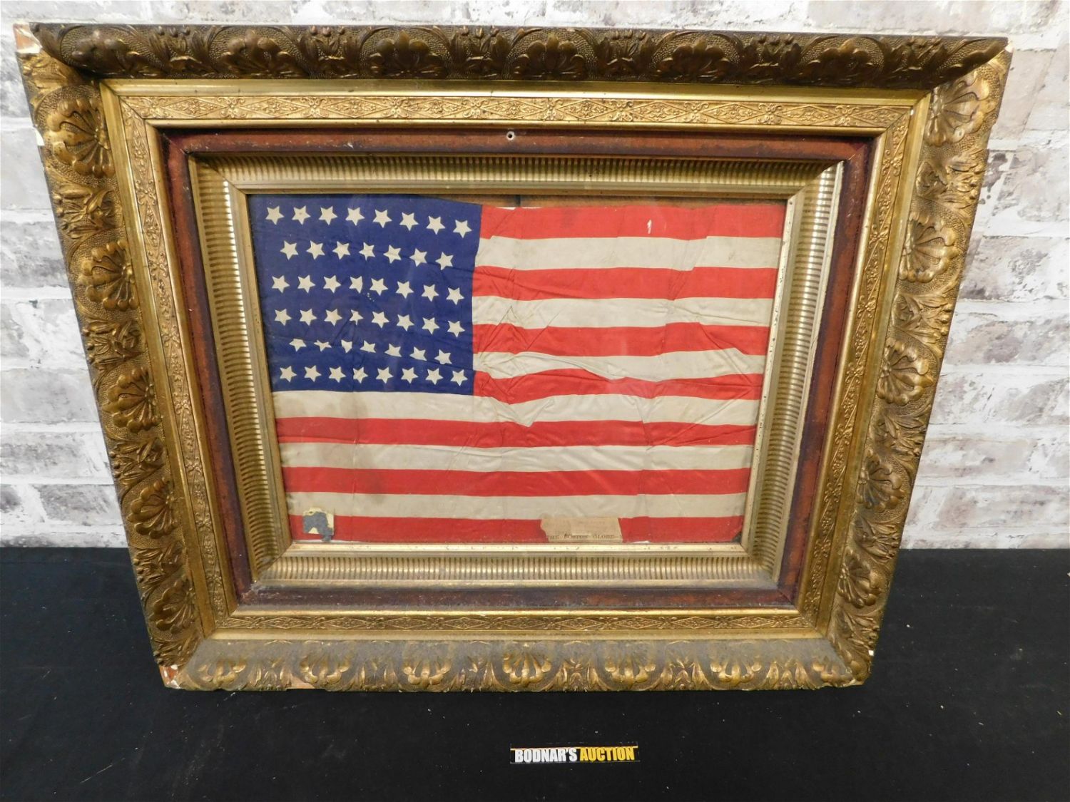 Framed Silk American Flag given as a Souvenir at Opening Day Fenway Park 1912. Measures 19.5" tall x 23" wide. All lots in this auction came from the Historic McGreevy’s Sports Bar in Boston Massachusetts. These items were hanging or displayed in the bar until the closure of the bar in 2020. All items in this sale are copies from the original archives from the Boston Public Library unless noted in the description as "original". Please read the terms and conditions. This sale will be broadcast live on sale day with full descriptions of each lot being sold, as well as video feed of each lot. All items MUST be paid for within 24 HOURS of the sale. Anyone who has not paid within 24 hours will have a dispute opened against them and will not be able to bid at future sales. All items in this sale are local pick up only, or shipping via UPS store in Kendall Park, NJ.. If you need your items shipped, we will send your items to the UPS store in Kendall Park, NJ . They will pack it and ship it to you and you will pay them separately and directly. Please call them to get a quote before bidding. Their phone number is 732-422-7242. If you are picking your items up you must contact us NO LATER than 24 hours after the sale to schedule an appointment to pick up. Pick up dates are Thursday, Friday, Saturday, and Monday ONLY, and are BY APPOINTMENT ONLY!! After Monday, if you have not picked up your items, they will be disposed of.