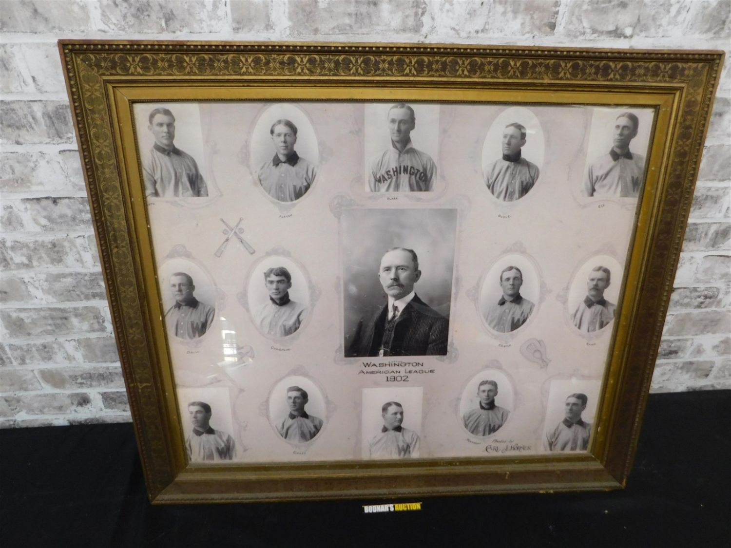 Framed Copy of Horner Team Composite 1902 Washington American League Baseball Team featuring Ed Delebanty. (BPL) Measures 27" tall x 34" wide. All lots in this auction came from the Historic McGreevy’s Sports Bar in Boston Massachusetts. These items were hanging or displayed in the bar until the closure of the bar in 2020. All items in this sale are copies from the original archives from the Boston Public Library unless noted in the description as "original". Please read the terms and conditions. This sale will be broadcast live on sale day with full descriptions of each lot being sold, as well as video feed of each lot. All items MUST be paid for within 24 HOURS of the sale. Anyone who has not paid within 24 hours will have a dispute opened against them and will not be able to bid at future sales. All items in this sale are local pick up only, or shipping via UPS store in Kendall Park, NJ.. If you need your items shipped, we will send your items to the UPS store in Kendall Park, NJ . They will pack it and ship it to you and you will pay them separately and directly. Please call them to get a quote before bidding. Their phone number is 732-422-7242. If you are picking your items up you must contact us NO LATER than 24 hours after the sale to schedule an appointment to pick up. Pick up dates are Thursday, Friday, Saturday, and Monday ONLY, and are BY APPOINTMENT ONLY!! After Monday, if you have not picked up your items, they will be disposed of.