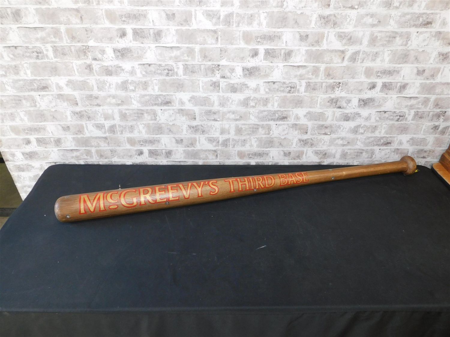 Oversized McGreevy’s Third Base Advertising Hanging Bat. Measures 60". All lots in this auction came from the Historic McGreevy’s Sports Bar in Boston Massachusetts. These items were hanging or displayed in the bar until the closure of the bar in 2020. All items in this sale are copies from the original archives from the Boston Public Library unless noted in the description as "original". Please read the terms and conditions. This sale will be broadcast live on sale day with full descriptions of each lot being sold, as well as video feed of each lot. All items MUST be paid for within 24 HOURS of the sale. Anyone who has not paid within 24 hours will have a dispute opened against them and will not be able to bid at future sales. All items in this sale are local pick up only, or shipping via UPS store in Kendall Park, NJ.. If you need your items shipped, we will send your items to the UPS store in Kendall Park, NJ . They will pack it and ship it to you and you will pay them separately and directly. Please call them to get a quote before bidding. Their phone number is 732-422-7242. If you are picking your items up you must contact us NO LATER than 24 hours after the sale to schedule an appointment to pick up. Pick up dates are Thursday, Friday, Saturday, and Monday ONLY, and are BY APPOINTMENT ONLY!! After Monday, if you have not picked up your items, they will be disposed of.