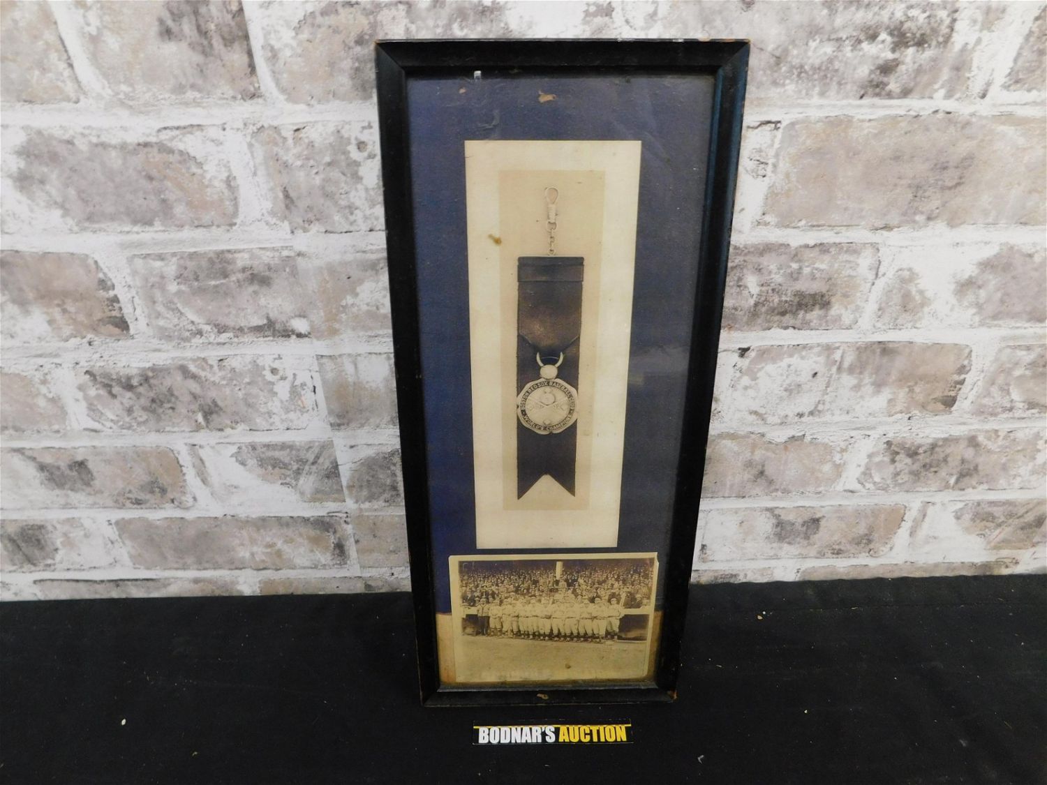 Framed Copy of 1912 Red Sox World Champion Medal and Portrait of Red Sox team in front of Fenway Dugout. Measures 15.5" tall x 6.5" wide. All lots in this auction came from the Historic McGreevy’s Sports Bar in Boston Massachusetts. These items were hanging or displayed in the bar until the closure of the bar in 2020. All items in this sale are copies from the original archives from the Boston Public Library unless noted in the description as "original". Please read the terms and conditions. This sale will be broadcast live on sale day with full descriptions of each lot being sold, as well as video feed of each lot. All items MUST be paid for within 24 HOURS of the sale. Anyone who has not paid within 24 hours will have a dispute opened against them and will not be able to bid at future sales. All items in this sale are local pick up only, or shipping via UPS store in Kendall Park, NJ.. If you need your items shipped, we will send your items to the UPS store in Kendall Park, NJ . They will pack it and ship it to you and you will pay them separately and directly. Please call them to get a quote before bidding. Their phone number is 732-422-7242. If you are picking your items up you must contact us NO LATER than 24 hours after the sale to schedule an appointment to pick up. Pick up dates are Thursday, Friday, Saturday, and Monday ONLY, and are BY APPOINTMENT ONLY!! After Monday, if you have not picked up your items, they will be disposed of.