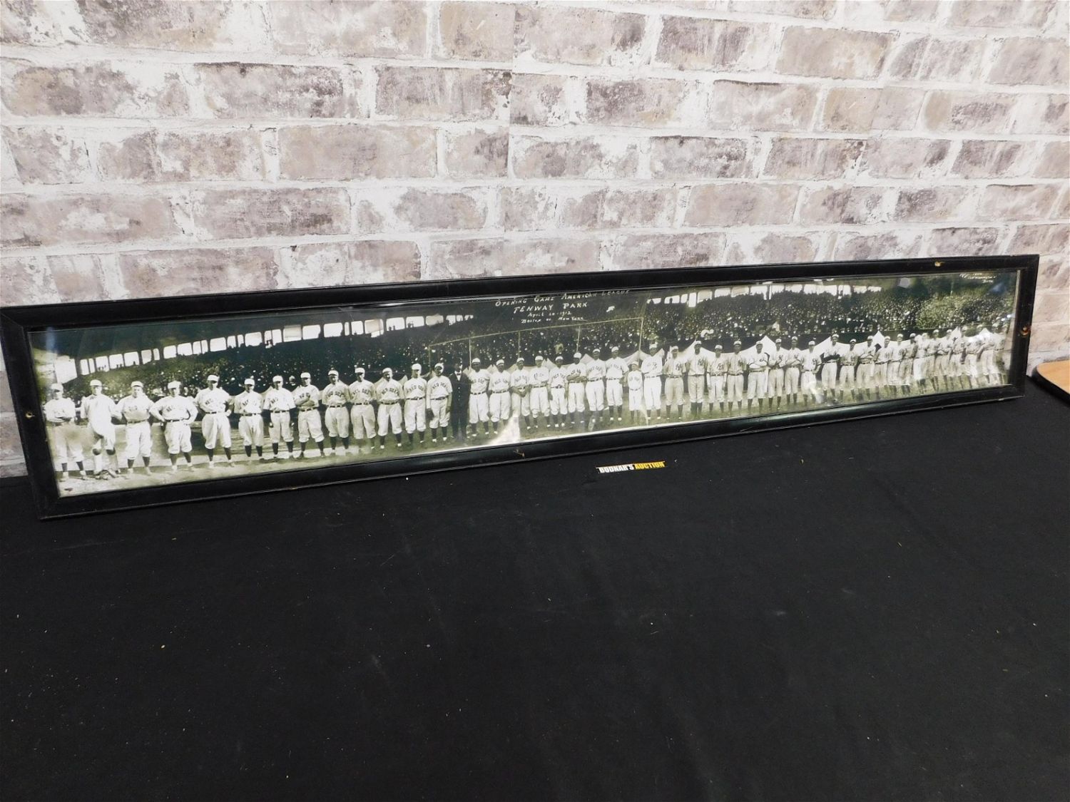 Framed Copy of 1912 Panoramic Image of Red Sox and Yankees on Opening Day April 20th at Fenway Park. Plexiglass is loose and creasing in photo. Measures All lots in this auction came from the Historic McGreevy’s Sports Bar in Boston Massachusetts. These items were hanging or displayed in the bar until the closure of the bar in 2020. All items in this sale are copies from the original archives from the Boston Public Library unless noted in the description as "original". Please read the terms and conditions. This sale will be broadcast live on sale day with full descriptions of each lot being sold, as well as video feed of each lot. All items MUST be paid for within 24 HOURS of the sale. Anyone who has not paid within 24 hours will have a dispute opened against them and will not be able to bid at future sales. All items in this sale are local pick up only, or shipping via UPS store in Kendall Park, NJ.. If you need your items shipped, we will send your items to the UPS store in Kendall Park, NJ . They will pack it and ship it to you and you will pay them separately and directly. Please call them to get a quote before bidding. Their phone number is 732-422-7242. If you are picking your items up you must contact us NO LATER than 24 hours after the sale to schedule an appointment to pick up. Pick up dates are Thursday, Friday, Saturday, and Monday ONLY, and are BY APPOINTMENT ONLY!! After Monday, if you have not picked up your items, they will be disposed of.