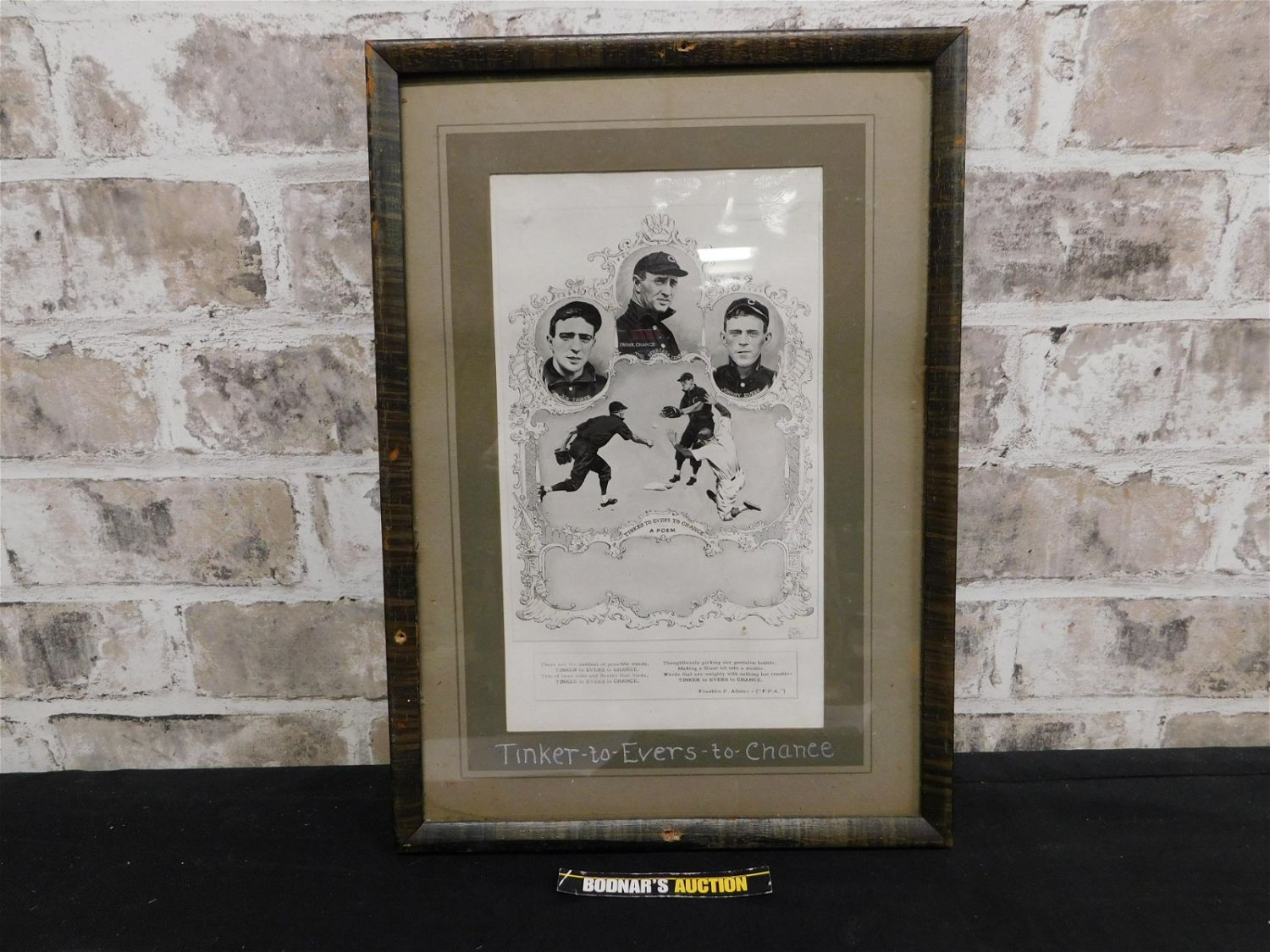 Framed Copy of Lithograph "Tinker, Evers to Chance. Measures 13.5" tall x 9.5" wide. All lots in this auction came from the Historic McGreevy’s Sports Bar in Boston Massachusetts. These items were hanging or displayed in the bar until the closure of the bar in 2020. All items in this sale are copies from the original archives from the Boston Public Library unless noted in the description as "original". Please read the terms and conditions. This sale will be broadcast live on sale day with full descriptions of each lot being sold, as well as video feed of each lot. All items MUST be paid for within 24 HOURS of the sale. Anyone who has not paid within 24 hours will have a dispute opened against them and will not be able to bid at future sales. All items in this sale are local pick up only, or shipping via UPS store in Kendall Park, NJ.. If you need your items shipped, we will send your items to the UPS store in Kendall Park, NJ . They will pack it and ship it to you and you will pay them separately and directly. Please call them to get a quote before bidding. Their phone number is 732-422-7242. If you are picking your items up you must contact us NO LATER than 24 hours after the sale to schedule an appointment to pick up. Pick up dates are Thursday, Friday, Saturday, and Monday ONLY, and are BY APPOINTMENT ONLY!! After Monday, if you have not picked up your items, they will be disposed of.