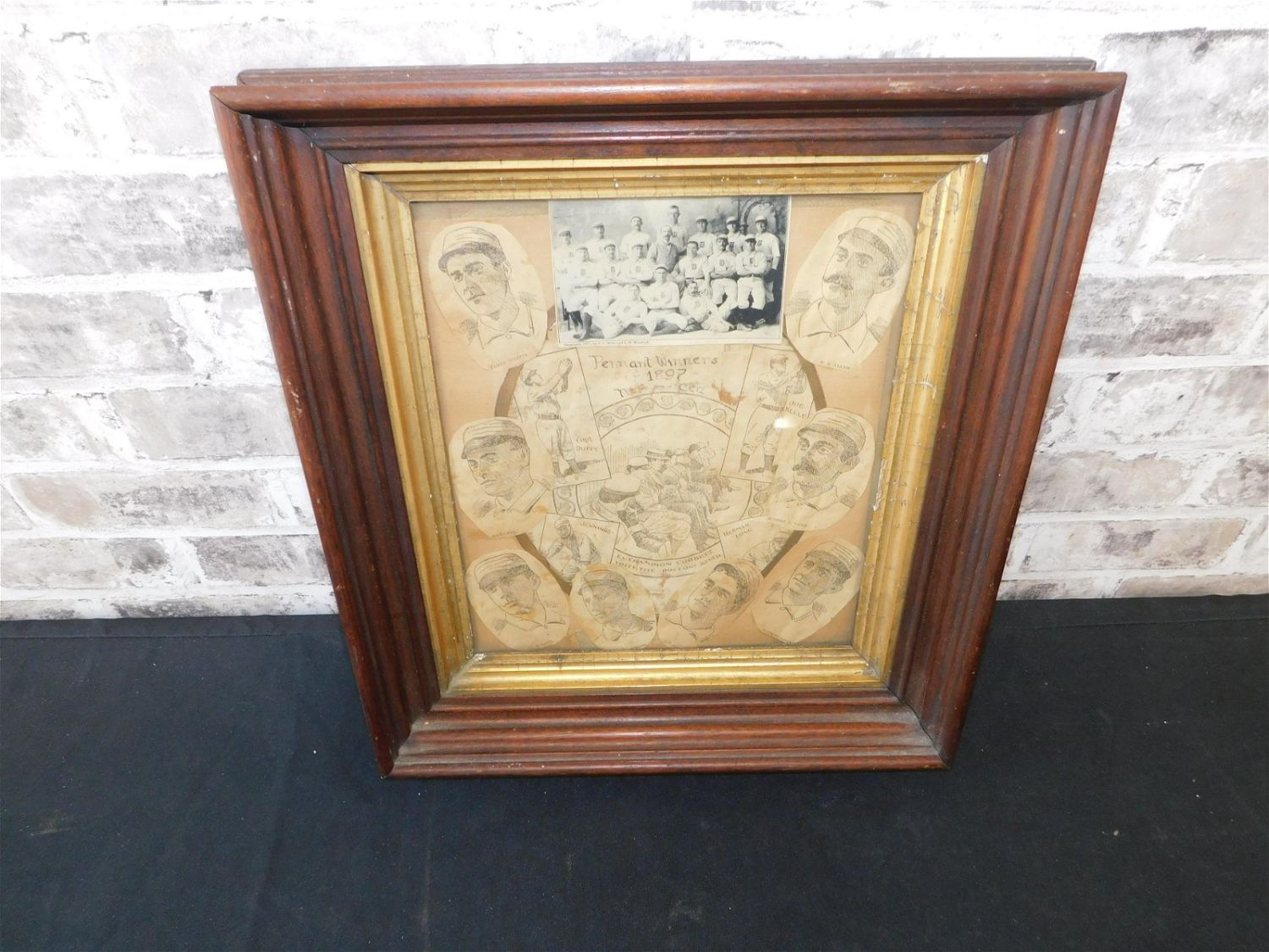 Original 1897 Boston Beaneaters framed collage. They were the winners of the 1897 National League Pennant. Later known as the Boston Braves. Original Item from Nuf-Ced McGreevy’s 3rd Base Saloon. Measures 16.5" tall x 14.5" wide. All lots in this auction came from the Historic McGreevy’s Sports Bar in Boston Massachusetts. These items were hanging or displayed in the bar until the closure of the bar in 2020. All items in this sale are copies from the original archives from the Boston Public Library unless noted in the description as "original". Please read the terms and conditions. This sale will be broadcast live on sale day with full descriptions of each lot being sold, as well as video feed of each lot. All items MUST be paid for within 24 HOURS of the sale. Anyone who has not paid within 24 hours will have a dispute opened against them and will not be able to bid at future sales. All items in this sale are local pick up only, or shipping via UPS store in Kendall Park, NJ.. If you need your items shipped, we will send your items to the UPS store in Kendall Park, NJ . They will pack it and ship it to you and you will pay them separately and directly. Please call them to get a quote before bidding. Their phone number is 732-422-7242. If you are picking your items up you must contact us NO LATER than 24 hours after the sale to schedule an appointment to pick up. Pick up dates are Thursday, Friday, Saturday, and Monday ONLY, and are BY APPOINTMENT ONLY!! After Monday, if you have not picked up your items, they will be disposed of.