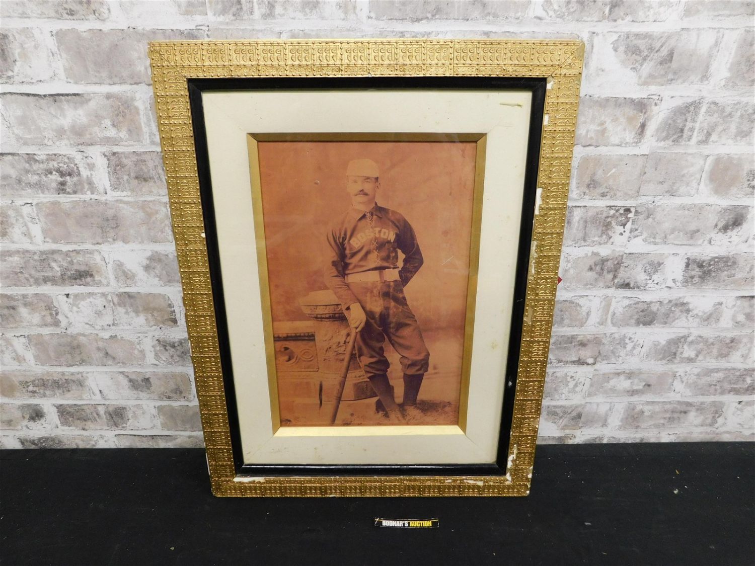 Framed Copy of King Kelly in Boston Uniform. Originally taken in 1888. (BPL) Measures 24" tall x 18" wide. Frame has some damage. All lots in this auction came from the Historic McGreevy’s Sports Bar in Boston Massachusetts. These items were hanging or displayed in the bar until the closure of the bar in 2020. All items in this sale are copies from the original archives from the Boston Public Library unless noted in the description as "original". Please read the terms and conditions. This sale will be broadcast live on sale day with full descriptions of each lot being sold, as well as video feed of each lot. All items MUST be paid for within 24 HOURS of the sale. Anyone who has not paid within 24 hours will have a dispute opened against them and will not be able to bid at future sales. All items in this sale are local pick up only, or shipping via UPS store in Kendall Park, NJ.. If you need your items shipped, we will send your items to the UPS store in Kendall Park, NJ . They will pack it and ship it to you and you will pay them separately and directly. Please call them to get a quote before bidding. Their phone number is 732-422-7242. If you are picking your items up you must contact us NO LATER than 24 hours after the sale to schedule an appointment to pick up. Pick up dates are Thursday, Friday, Saturday, and Monday ONLY, and are BY APPOINTMENT ONLY!! After Monday, if you have not picked up your items, they will be disposed of.