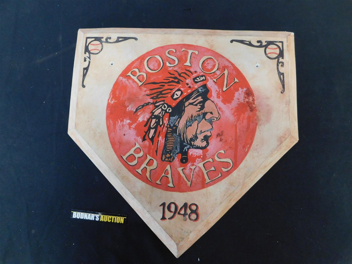 Boston Braves 1948 Souvenir Home Plate. Has holes for mounting. Measures 17" x 17". All lots in this auction came from the Historic McGreevy’s Sports Bar in Boston Massachusetts. These items were hanging or displayed in the bar until the closure of the bar in 2020. All items in this sale are copies from the original archives from the Boston Public Library unless noted in the description as "original". Please read the terms and conditions. This sale will be broadcast live on sale day with full descriptions of each lot being sold, as well as video feed of each lot. All items MUST be paid for within 24 HOURS of the sale. Anyone who has not paid within 24 hours will have a dispute opened against them and will not be able to bid at future sales. All items in this sale are local pick up only, or shipping via UPS store in Kendall Park, NJ.. If you need your items shipped, we will send your items to the UPS store in Kendall Park, NJ . They will pack it and ship it to you and you will pay them separately and directly. Please call them to get a quote before bidding. Their phone number is 732-422-7242. If you are picking your items up you must contact us NO LATER than 24 hours after the sale to schedule an appointment to pick up. Pick up dates are Thursday, Friday, Saturday, and Monday ONLY, and are BY APPOINTMENT ONLY!! After Monday, if you have not picked up your items, they will be disposed of.
