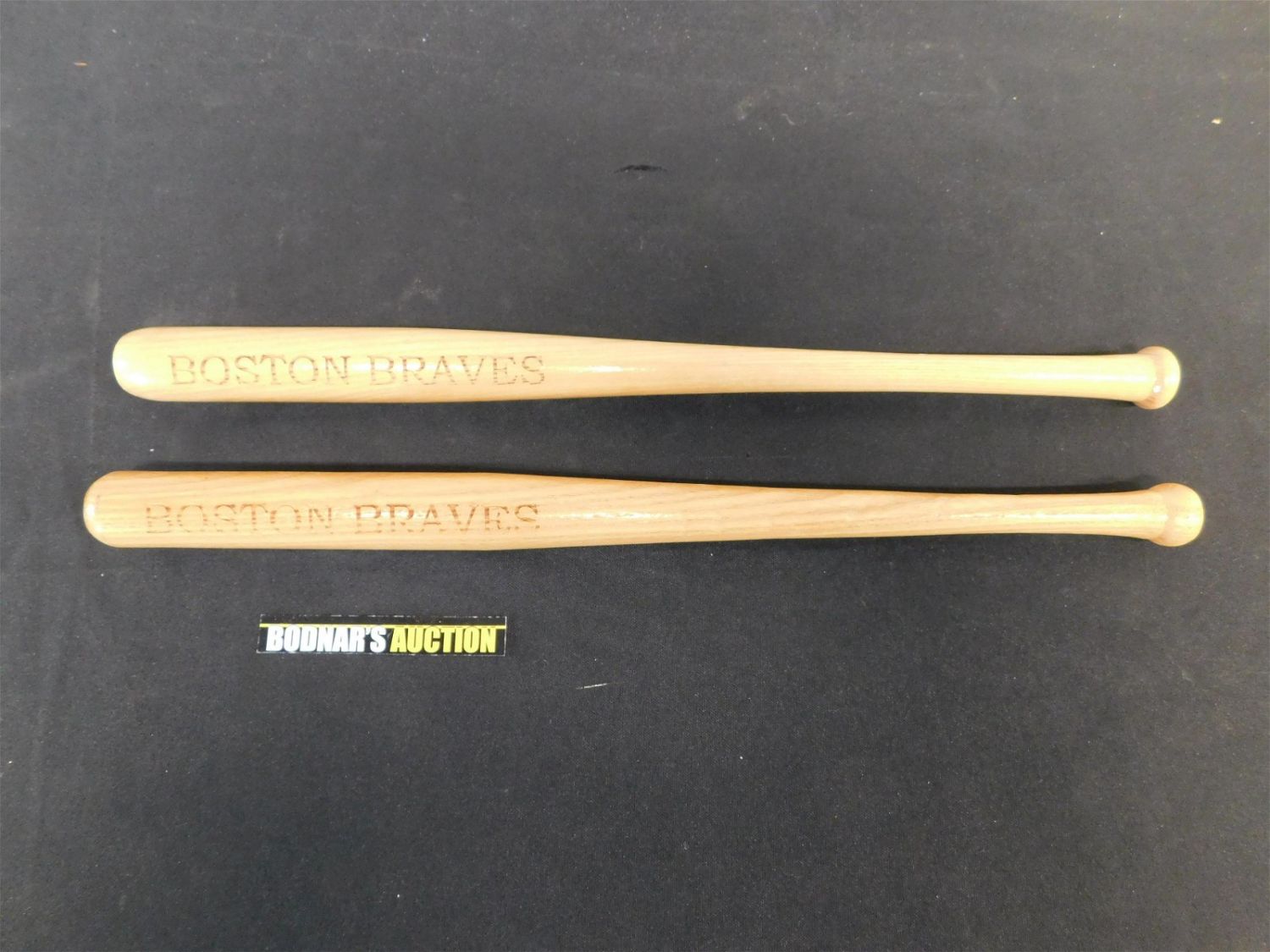 Lot of 2 Vintage Boston Braves Miniature Souvenir Bats. They measure 18" long. All lots in this auction came from the Historic McGreevy’s Sports Bar in Boston Massachusetts. These items were hanging or displayed in the bar until the closure of the bar in 2020. All items in this sale are copies from the original archives from the Boston Public Library unless noted in the description as "original". Please read the terms and conditions. This sale will be broadcast live on sale day with full descriptions of each lot being sold, as well as video feed of each lot. All items MUST be paid for within 24 HOURS of the sale. Anyone who has not paid within 24 hours will have a dispute opened against them and will not be able to bid at future sales. All items in this sale are local pick up only, or shipping via UPS store in Kendall Park, NJ.. If you need your items shipped, we will send your items to the UPS store in Kendall Park, NJ . They will pack it and ship it to you and you will pay them separately and directly. Please call them to get a quote before bidding. Their phone number is 732-422-7242. If you are picking your items up you must contact us NO LATER than 24 hours after the sale to schedule an appointment to pick up. Pick up dates are Thursday, Friday, Saturday, and Monday ONLY, and are BY APPOINTMENT ONLY!! After Monday, if you have not picked up your items, they will be disposed of.