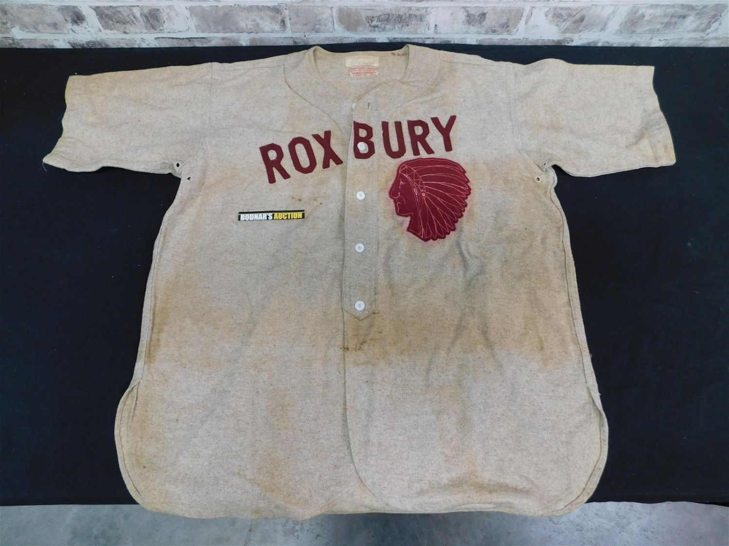 Vintage Roxbury Baseball Jersey with #7 on back. Tag reads Sportsman’s Paradise George J Ganem Prop. from Torrington Conn. Wool Jersey. Some bleeding from wool applique and some storage discoloration. Measures 30" long x 21" across the shoulders. All lots in this auction came from the Historic McGreevy’s Sports Bar in Boston Massachusetts. These items were hanging or displayed in the bar until the closure of the bar in 2020. All items in this sale are copies from the original archives from the Boston Public Library unless noted in the description as "original". Please read the terms and conditions. This sale will be broadcast live on sale day with full descriptions of each lot being sold, as well as video feed of each lot. All items MUST be paid for within 24 HOURS of the sale. Anyone who has not paid within 24 hours will have a dispute opened against them and will not be able to bid at future sales. All items in this sale are local pick up only, or shipping via UPS store in Kendall Park, NJ.. If you need your items shipped, we will send your items to the UPS store in Kendall Park, NJ . They will pack it and ship it to you and you will pay them separately and directly. Please call them to get a quote before bidding. Their phone number is 732-422-7242. If you are picking your items up you must contact us NO LATER than 24 hours after the sale to schedule an appointment to pick up. Pick up dates are Thursday, Friday, Saturday, and Monday ONLY, and are BY APPOINTMENT ONLY!! After Monday, if you have not picked up your items, they will be disposed of.