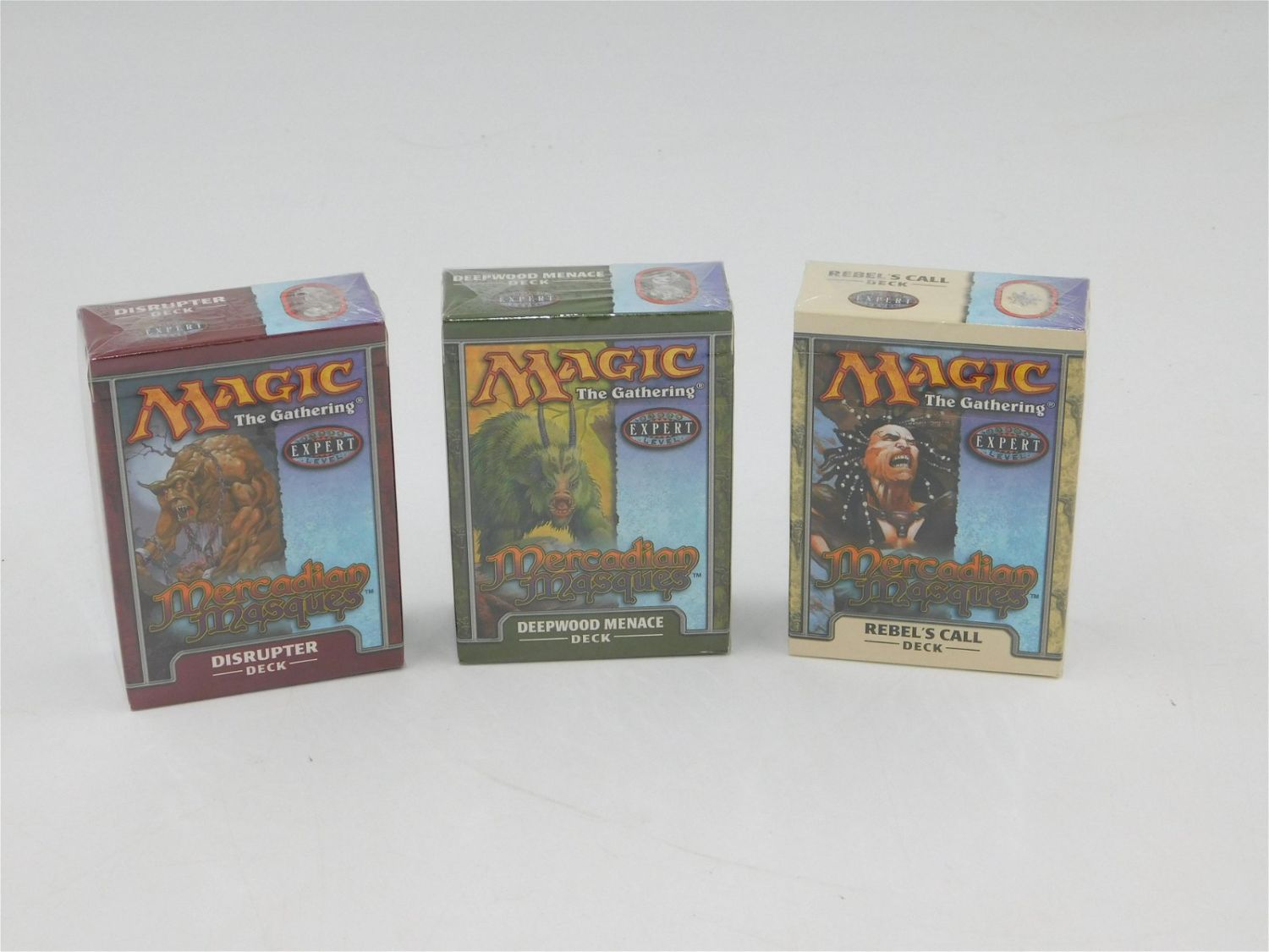 Magic the Gathering Mercadian Masques Themed Deck Lot of 3 – All Factory Sealed. Includes Rebel’s Call, Deepwood Menace and Disrupter Deck. All invoices must be paid within 24 hours of the sale. All items are shipped USPS or UPS and will be billed separately. A $10 handling fee is added to the shipping price per lot. Local pickups are in our South Brunswick location on Friday, Saturday and Monday ONLY! All pickups are by appointment only. Any condition issues will be listed in the description. Please read the terms for full information.