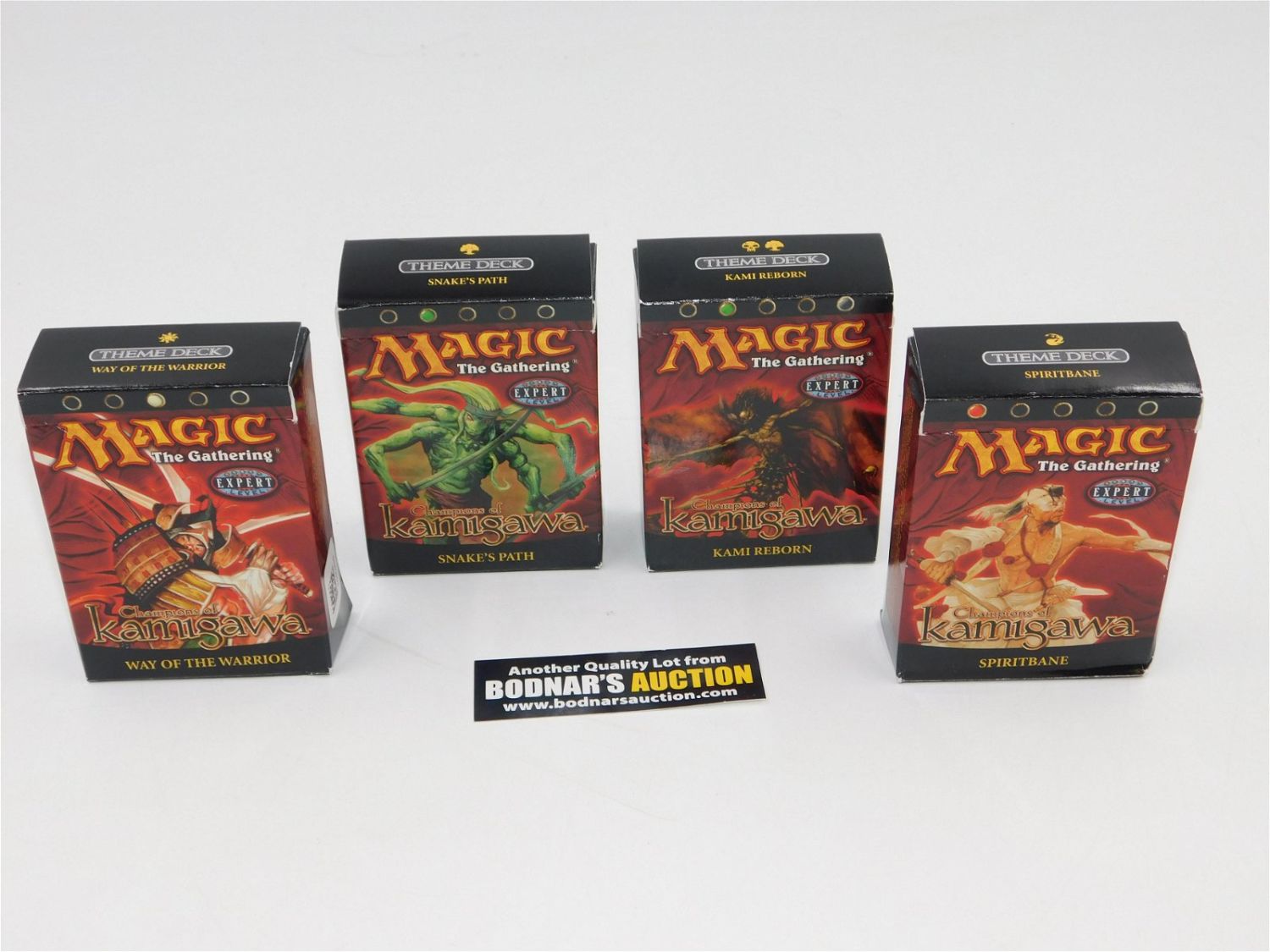 Magic the Gathering Champions of Kamigawa Themed Deck Lot of 4 – All Externally Opened – 3 are Factory Sealed inside. The unsealed deck is Snake’s Path and the sealed decks are Way of the Warrior, Spiritbane, and Kami Reborn. All invoices must be paid within 24 hours of the sale. All items are shipped USPS or UPS and will be billed separately. A $10 handling fee is added to the shipping price per lot. Local pickups are in our South Brunswick location on Friday, Saturday and Monday ONLY! All pickups are by appointment only. Any condition issues will be listed in the description. Please read the terms for full information.