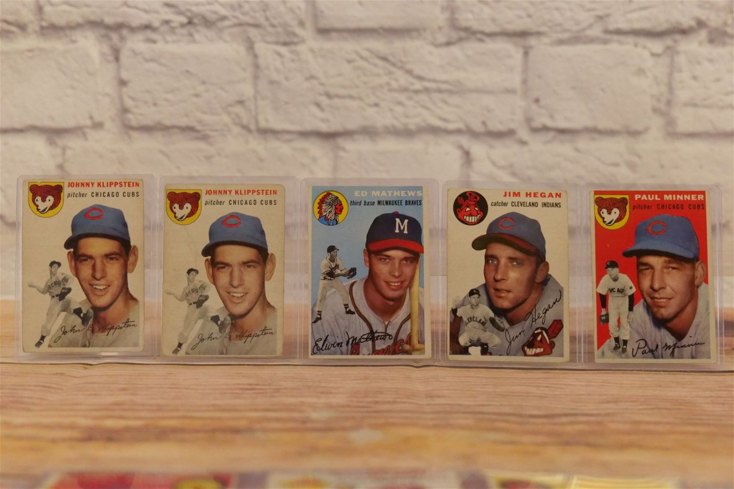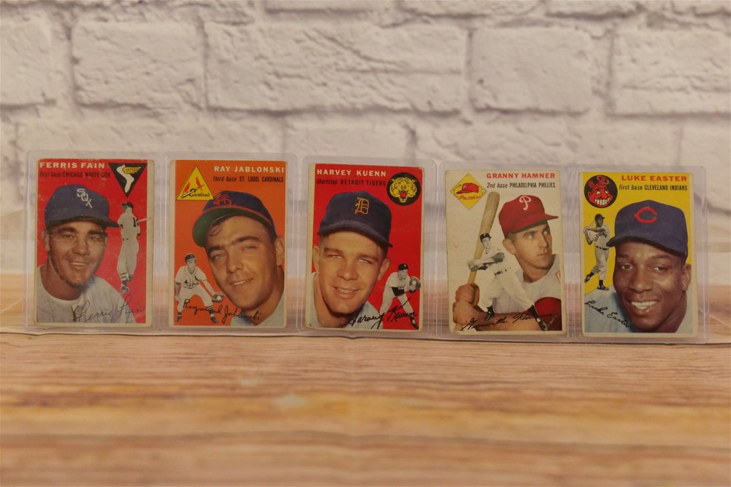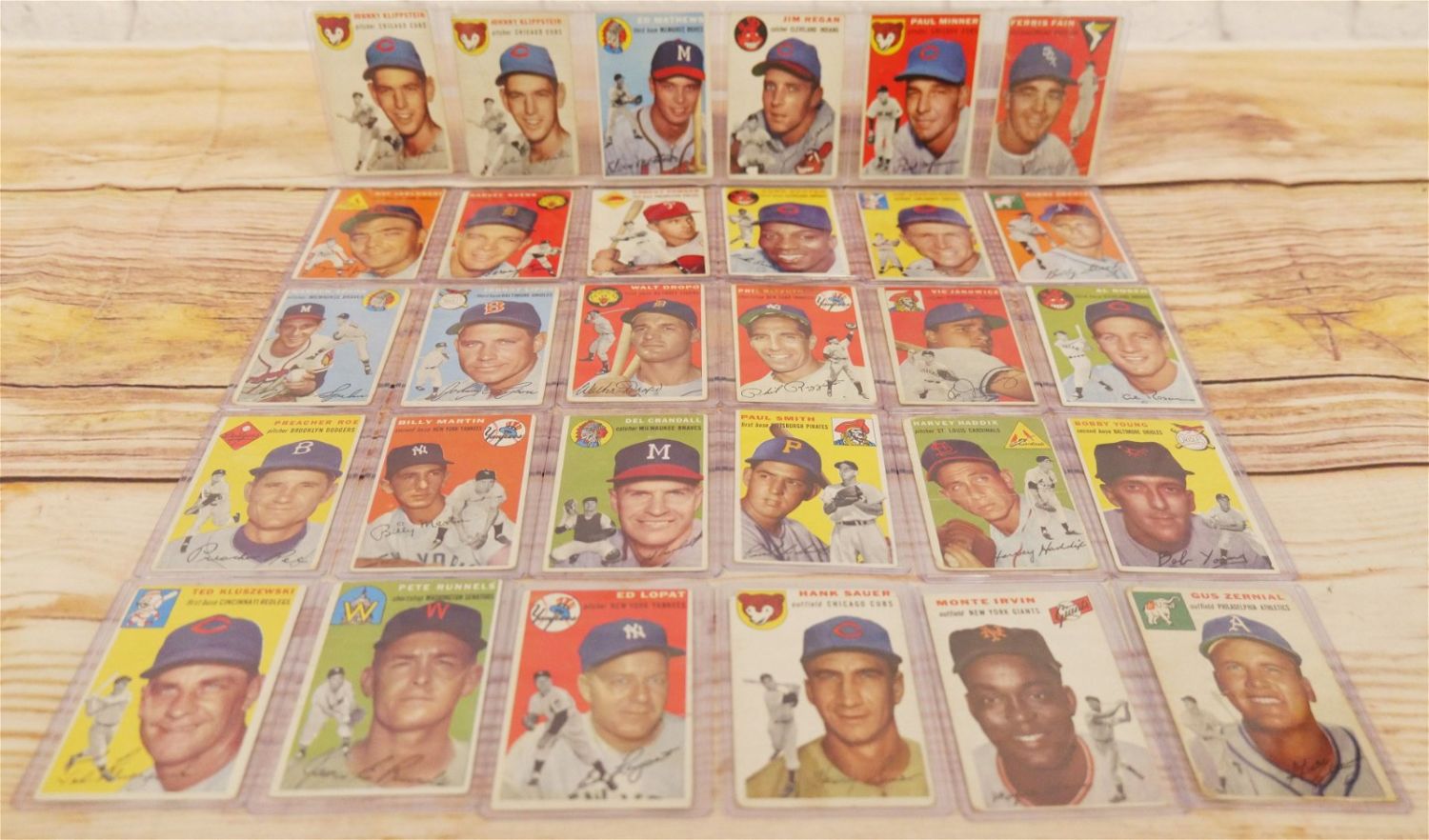 Lot of 30 Topps 1954 Baseball Cards. Including #2-9 and 11-31 with 2 copies of 31. Lot includes Phil Rizzuto, Ferris Fain, Ed Mathews. All invoices must be paid within 24 hours of the sale. We offer multiple shipping options, the estimate on this page is ONLY the Liveauctioneers Live Ship Option, we also offer Pick-Ups Thursday, Friday, Saturday, and Monday immediately following the sale. BY APPOINTMENT ONLY.