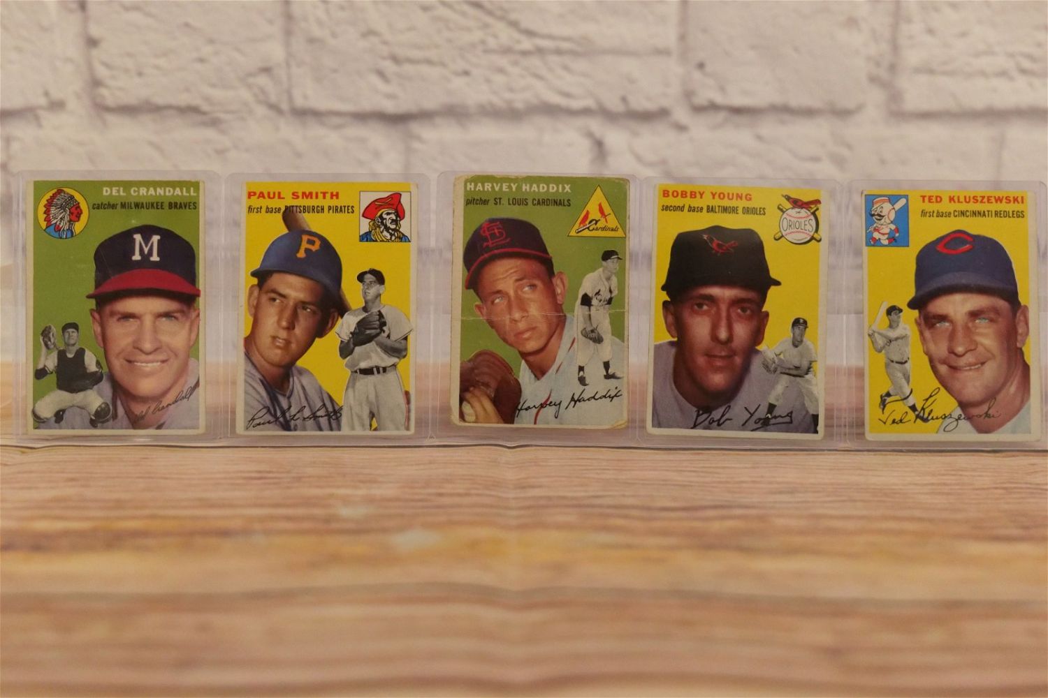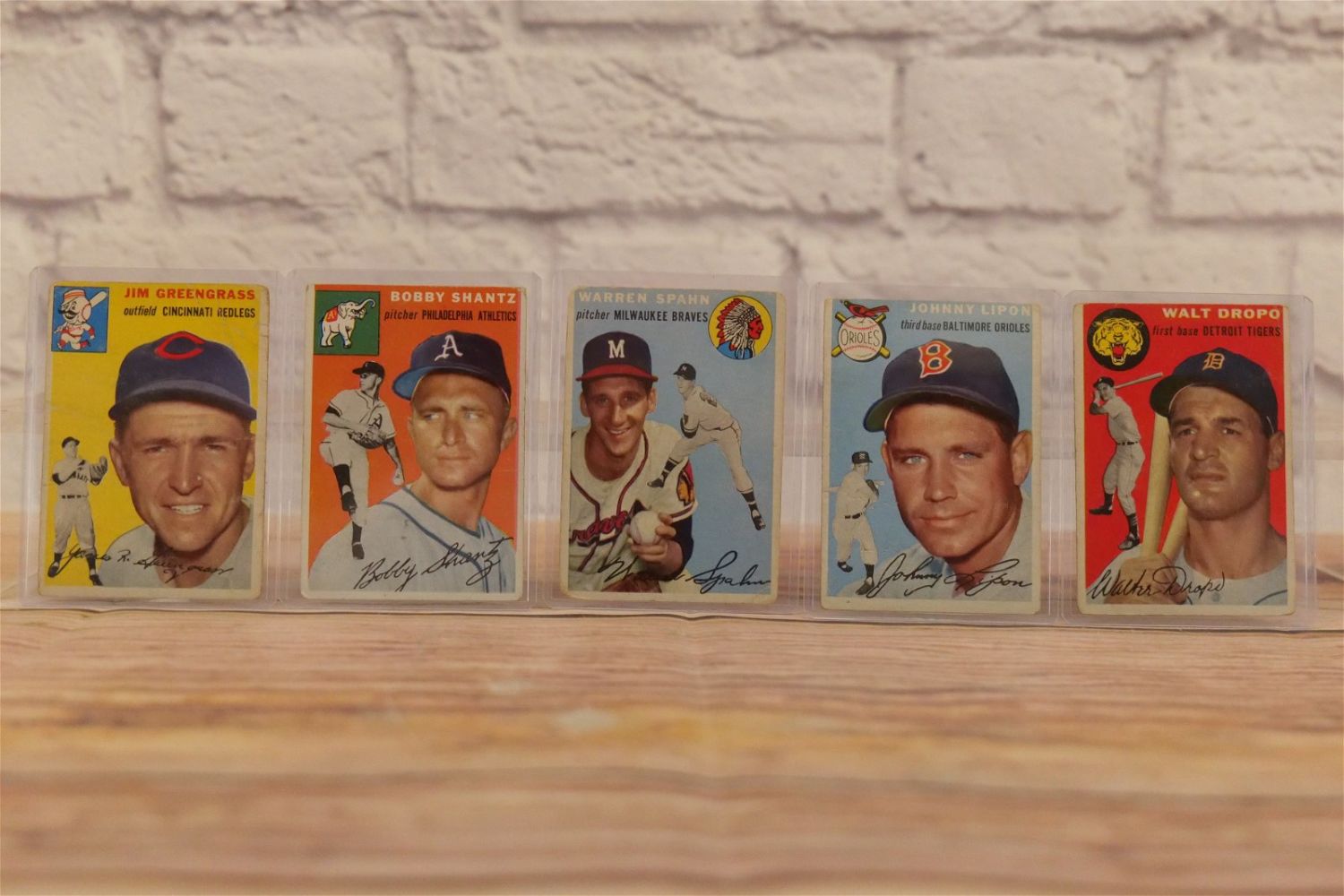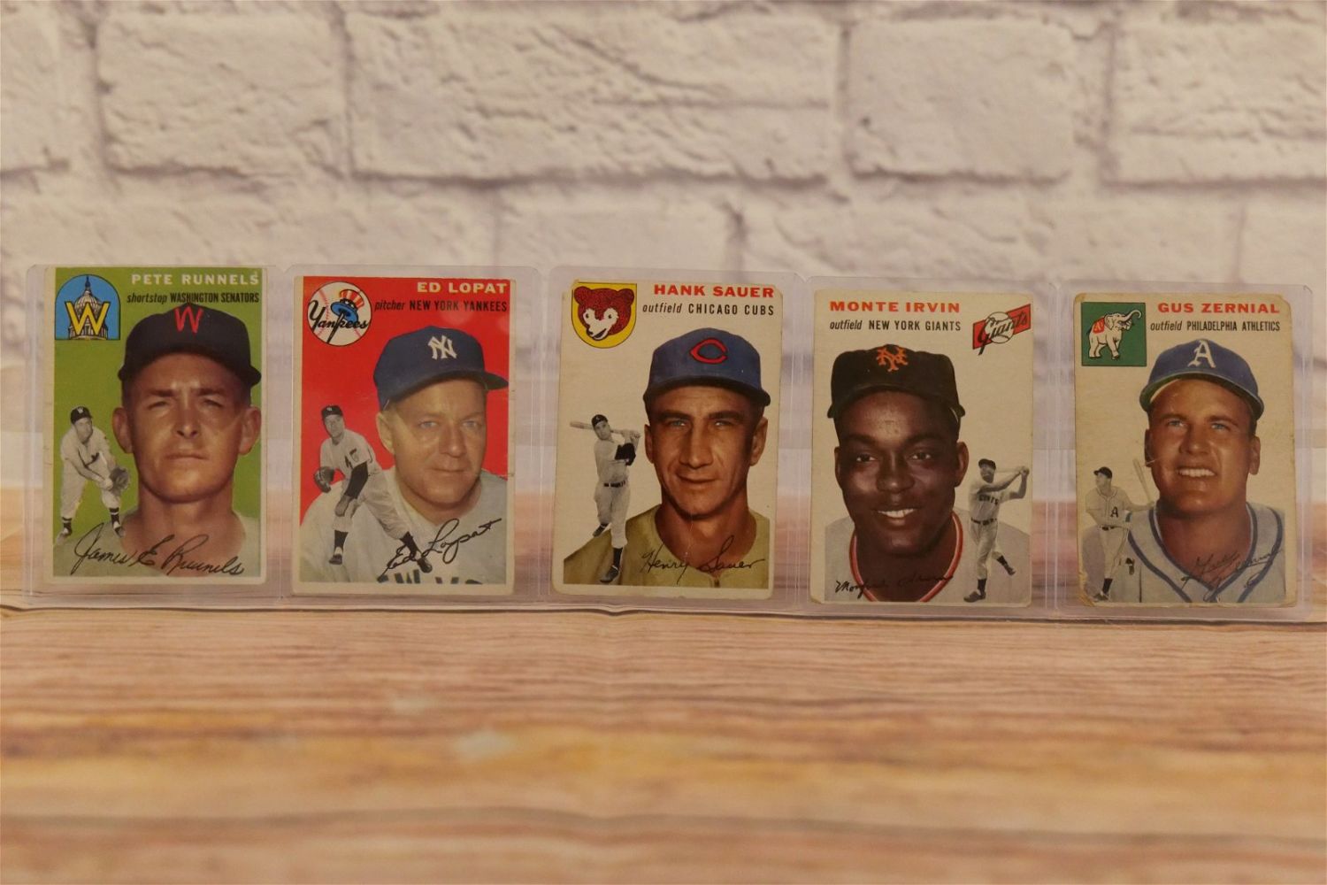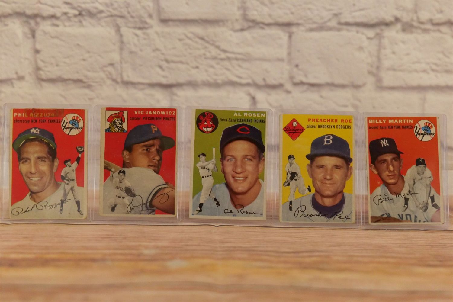 Lot of 30 Topps 1954 Baseball Cards. Including #2-9 and 11-31 with 2 copies of 31. Lot includes Phil Rizzuto, Ferris Fain, Ed Mathews. All invoices must be paid within 24 hours of the sale. We offer multiple shipping options, the estimate on this page is ONLY the Liveauctioneers Live Ship Option, we also offer Pick-Ups Thursday, Friday, Saturday, and Monday immediately following the sale. BY APPOINTMENT ONLY.