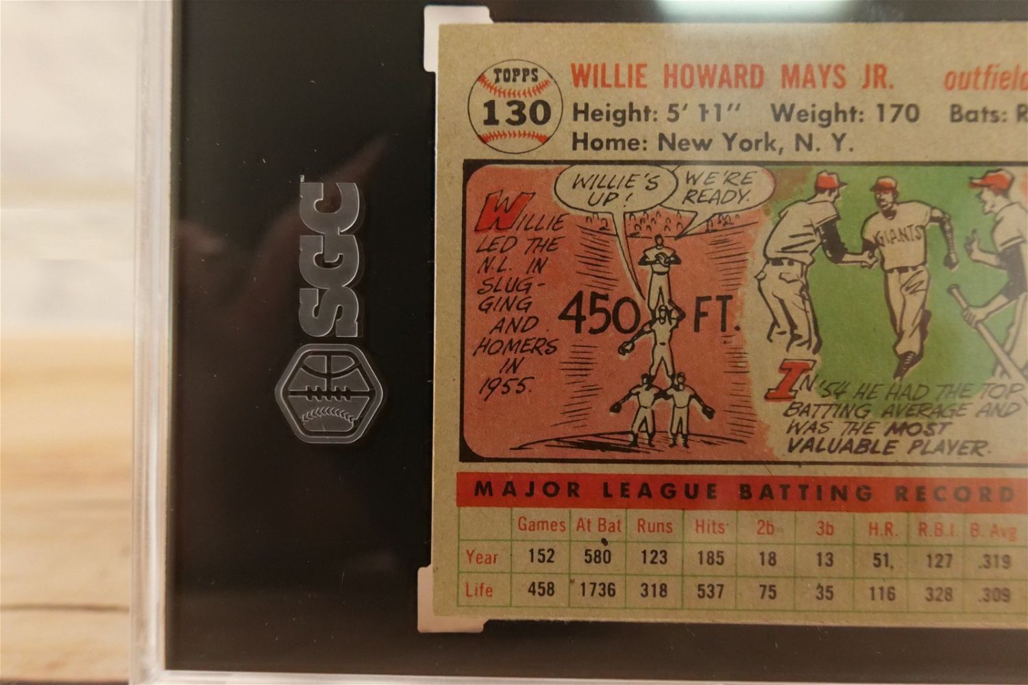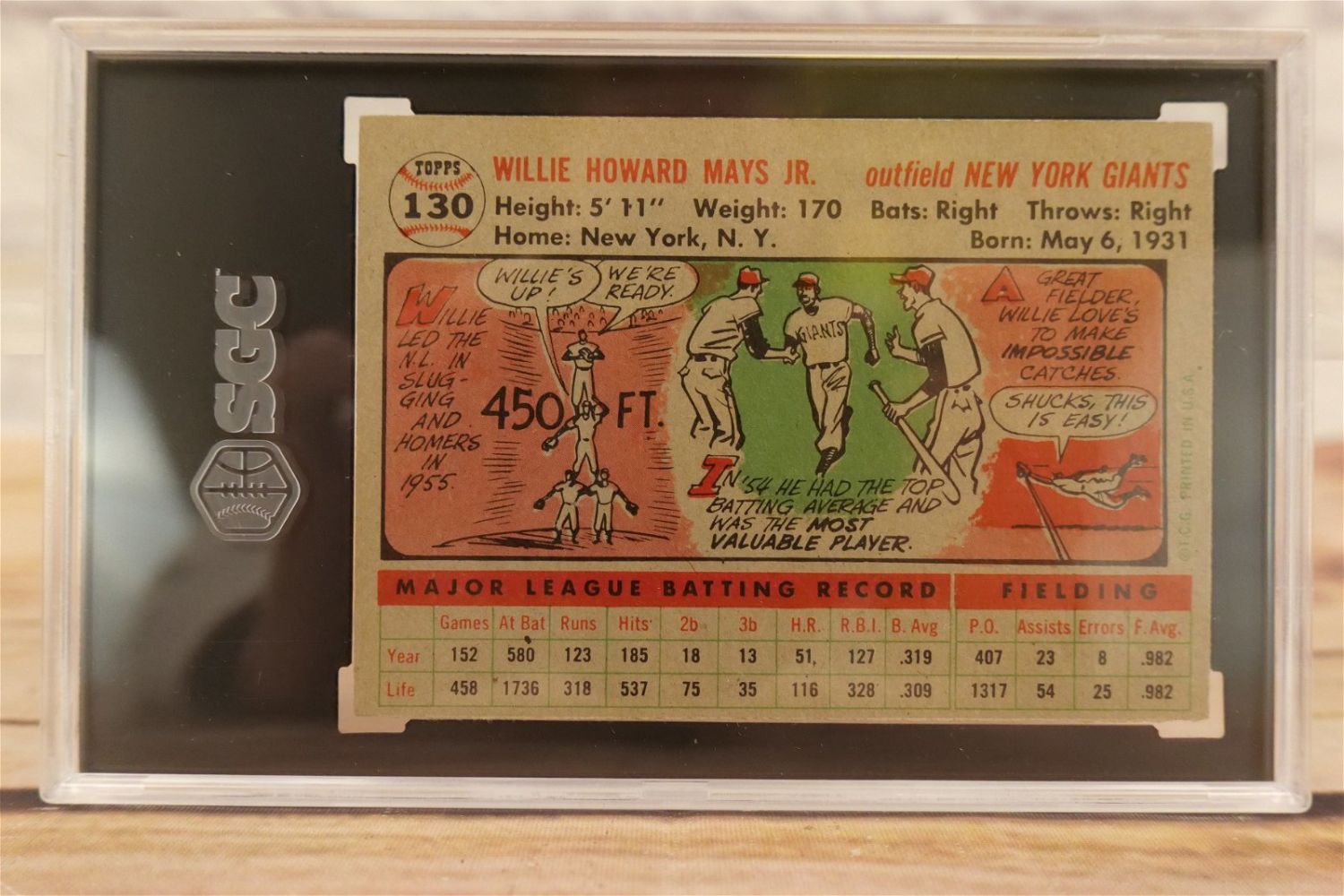 Willie Mays 1956 Topps Baseball Card – Gray Back #130. SGC Graded 2 GD. All invoices must be paid within 24 hours of the sale. We offer multiple shipping options, the estimate on this page is ONLY the Liveauctioneers Live Ship Option, we also offer Pick-Ups Thursday, Friday, Saturday, and Monday immediately following the sale. BY APPOINTMENT ONLY.