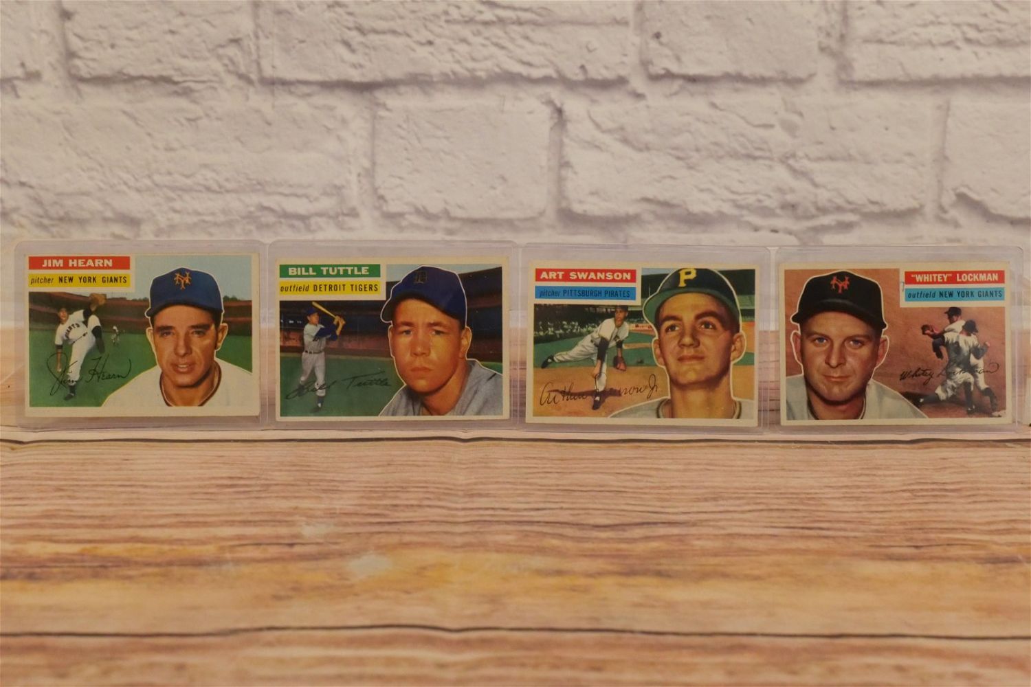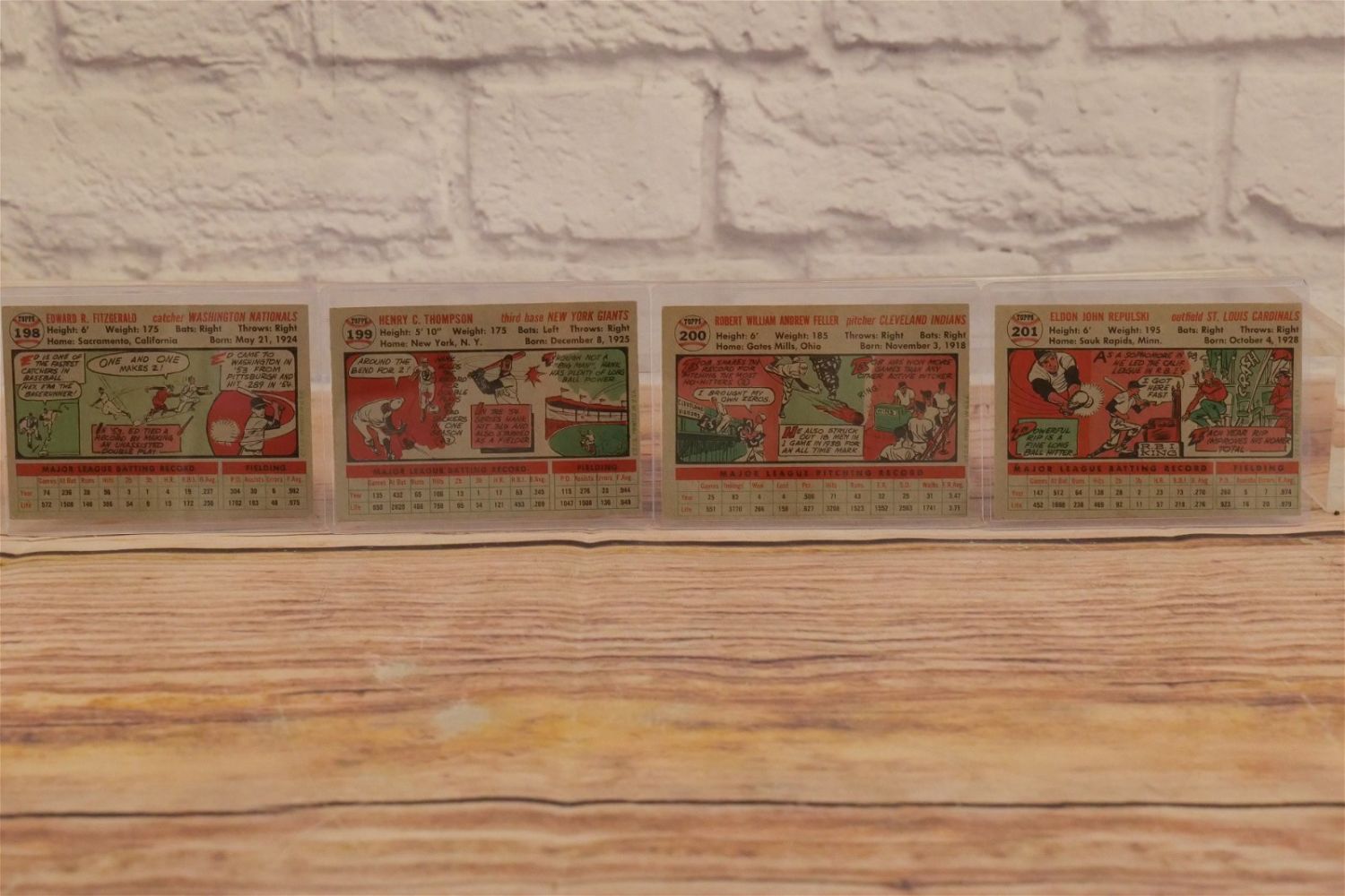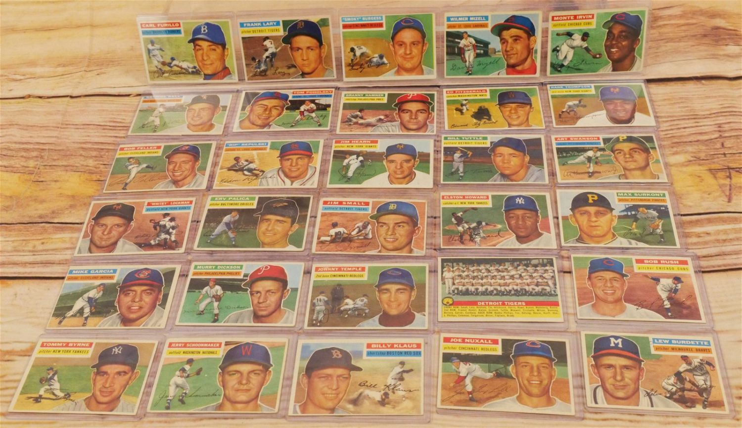 Lot of 30 Topps 1956 Baseball Cards. Including #190-219. Lot includes Bob Feller. All invoices must be paid within 24 hours of the sale. We offer multiple shipping options, the estimate on this page is ONLY the Liveauctioneers Live Ship Option, we also offer Pick-Ups Thursday, Friday, Saturday, and Monday immediately following the sale. BY APPOINTMENT ONLY.