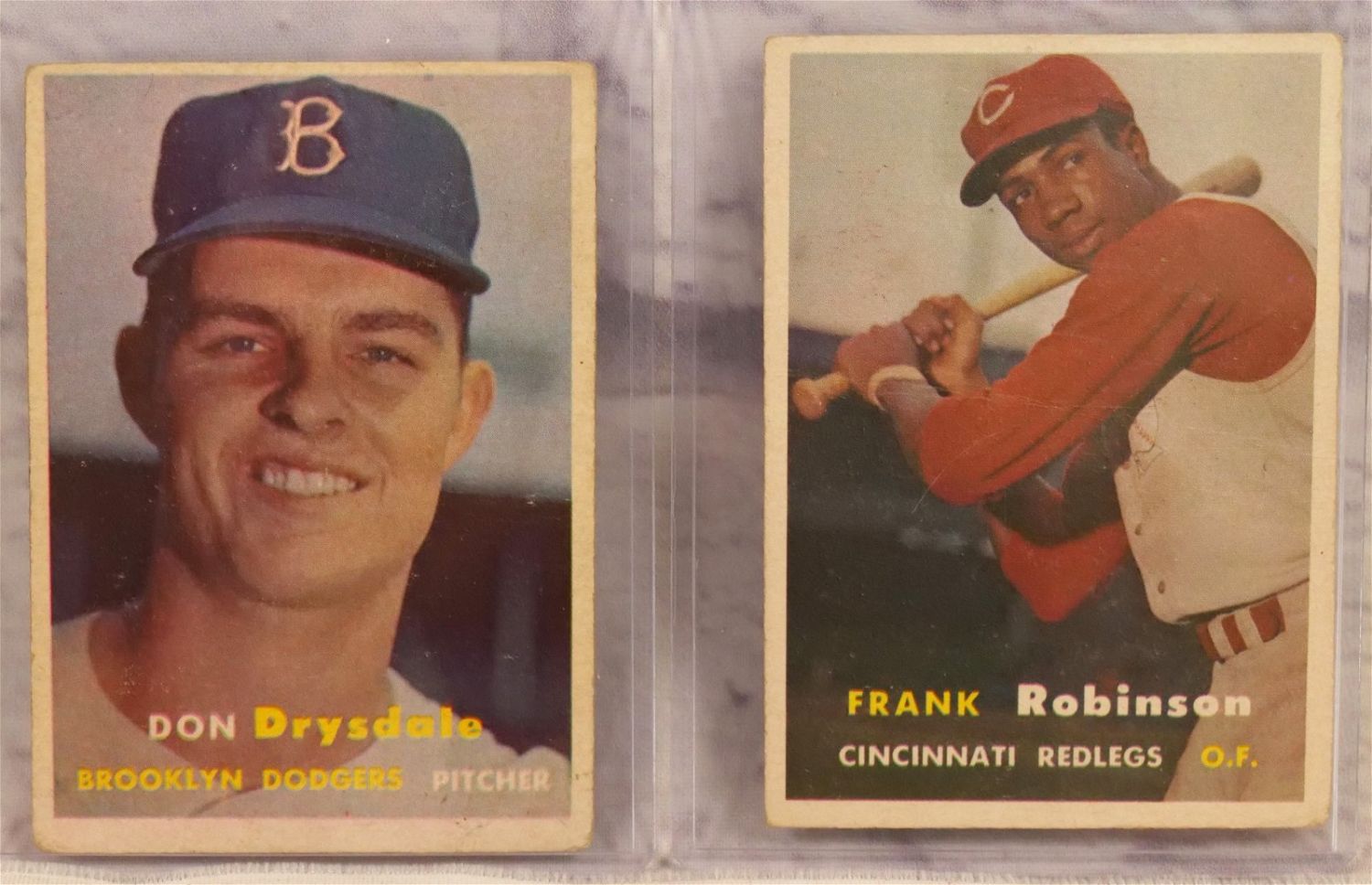 Lot of 2 Topps 1957 Baseball Cards including Frank Robinson #35 and Don Drysdale. All invoices must be paid within 24 hours of the sale. We offer multiple shipping options, the estimate on this page is ONLY the Liveauctioneers Live Ship Option, we also offer Pick-Ups Thursday, Friday, Saturday, and Monday immediately following the sale. BY APPOINTMENT ONLY.