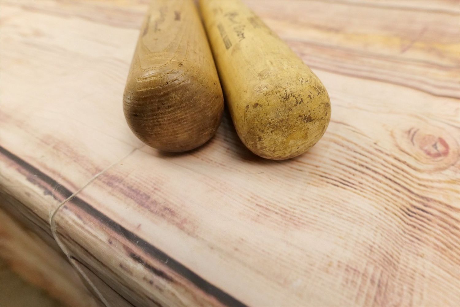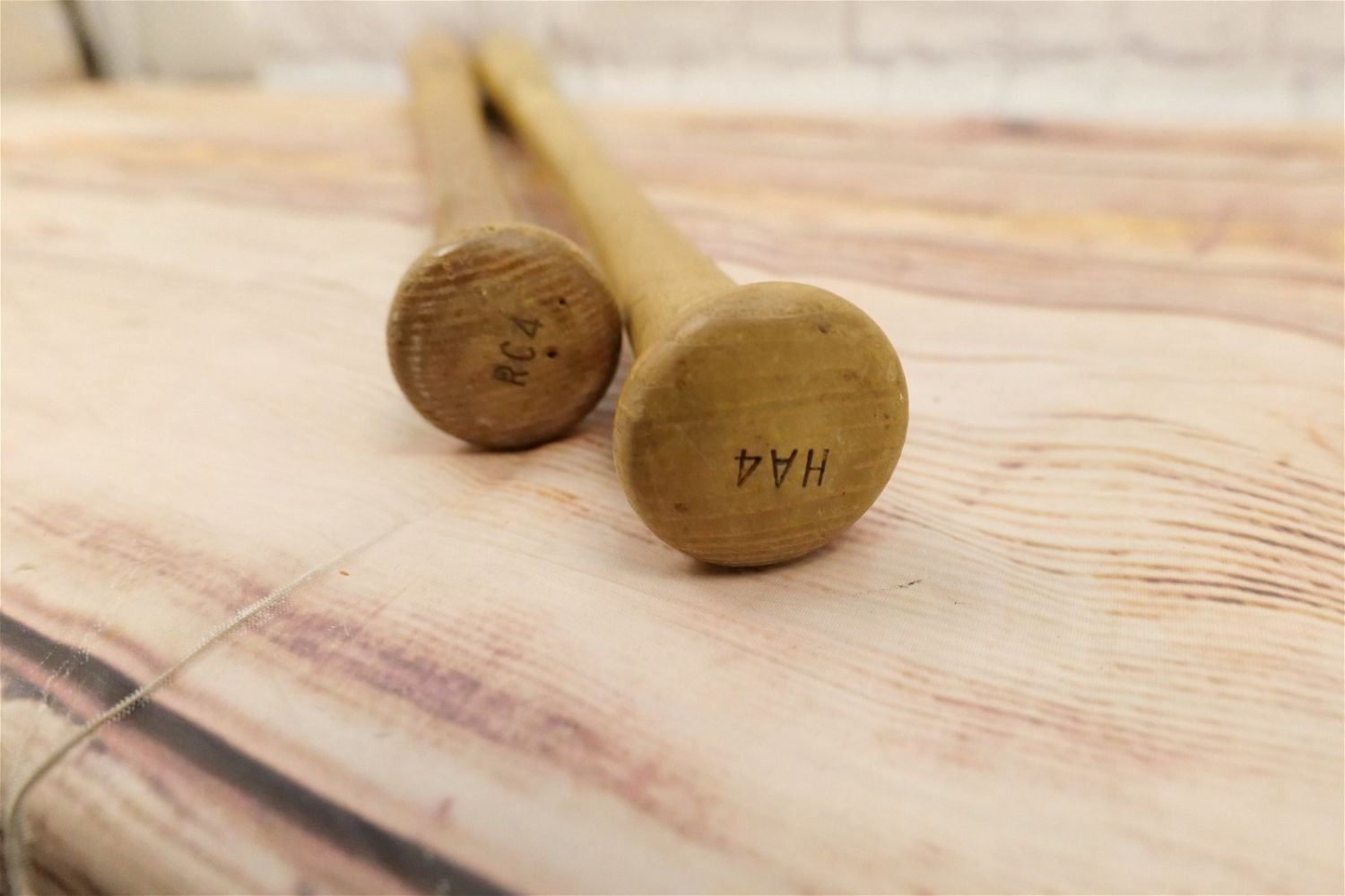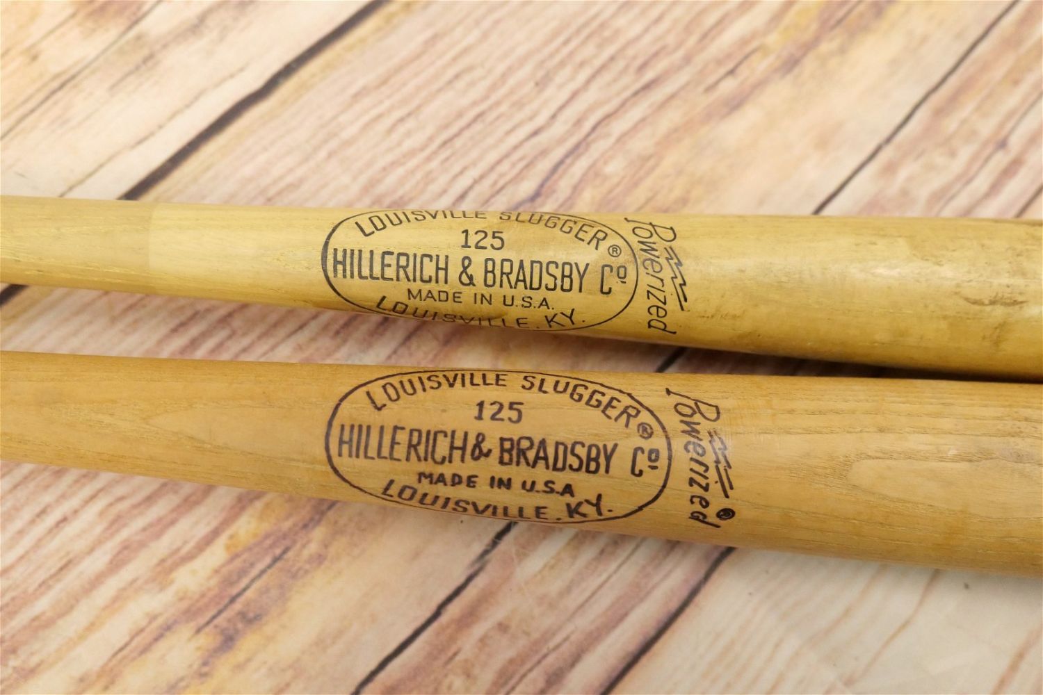 Lot of 2 Hillerich & Bradsby Co. Louisville Sluggers. Circa 1965-1979. Lot includes Henry Aaron 125 and Roberto Clemente 125. Largest measures 34" long. All bats are considered to be in used condition. All invoices must be paid within 24 hours of the sale. We offer multiple shipping options, the estimate on this page is ONLY the Liveauctioneers Live Ship Option, we also offer Pick-Ups Thursday, Friday, Saturday, and Monday immediately following the sale. BY APPOINTMENT ONLY.