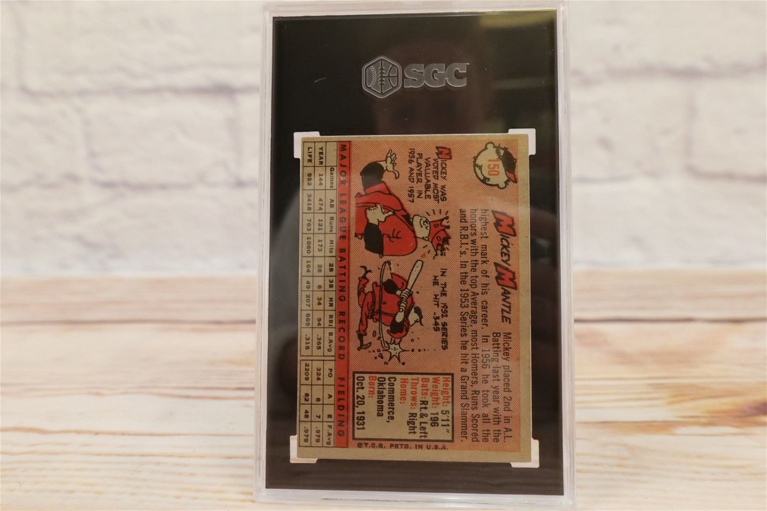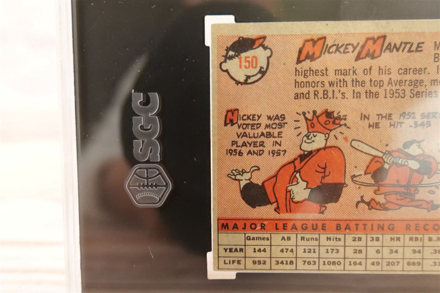 Mickey Mantle 1958 Topps Baseball Card #150. SGC Graded 2.5 GD+. All invoices must be paid within 24 hours of the sale. We offer multiple shipping options, the estimate on this page is ONLY the Liveauctioneers Live Ship Option, we also offer Pick-Ups Thursday, Friday, Saturday, and Monday immediately following the sale. BY APPOINTMENT ONLY.