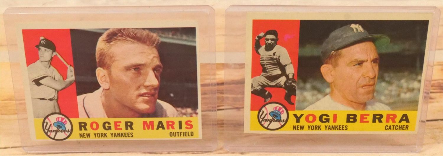Lot of 2 Topps 1960 Baseball Cards including Roger Maris #377 and Yogi Berra #480. All invoices must be paid within 24 hours of the sale. We offer multiple shipping options, the estimate on this page is ONLY the Liveauctioneers Live Ship Option, we also offer Pick-Ups Thursday, Friday, Saturday, and Monday immediately following the sale. BY APPOINTMENT ONLY.