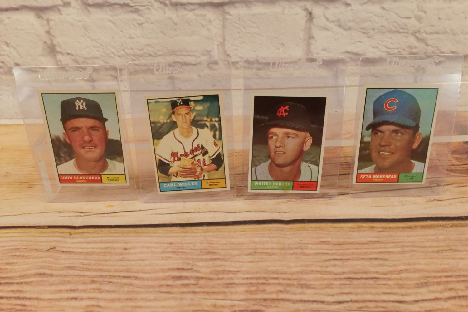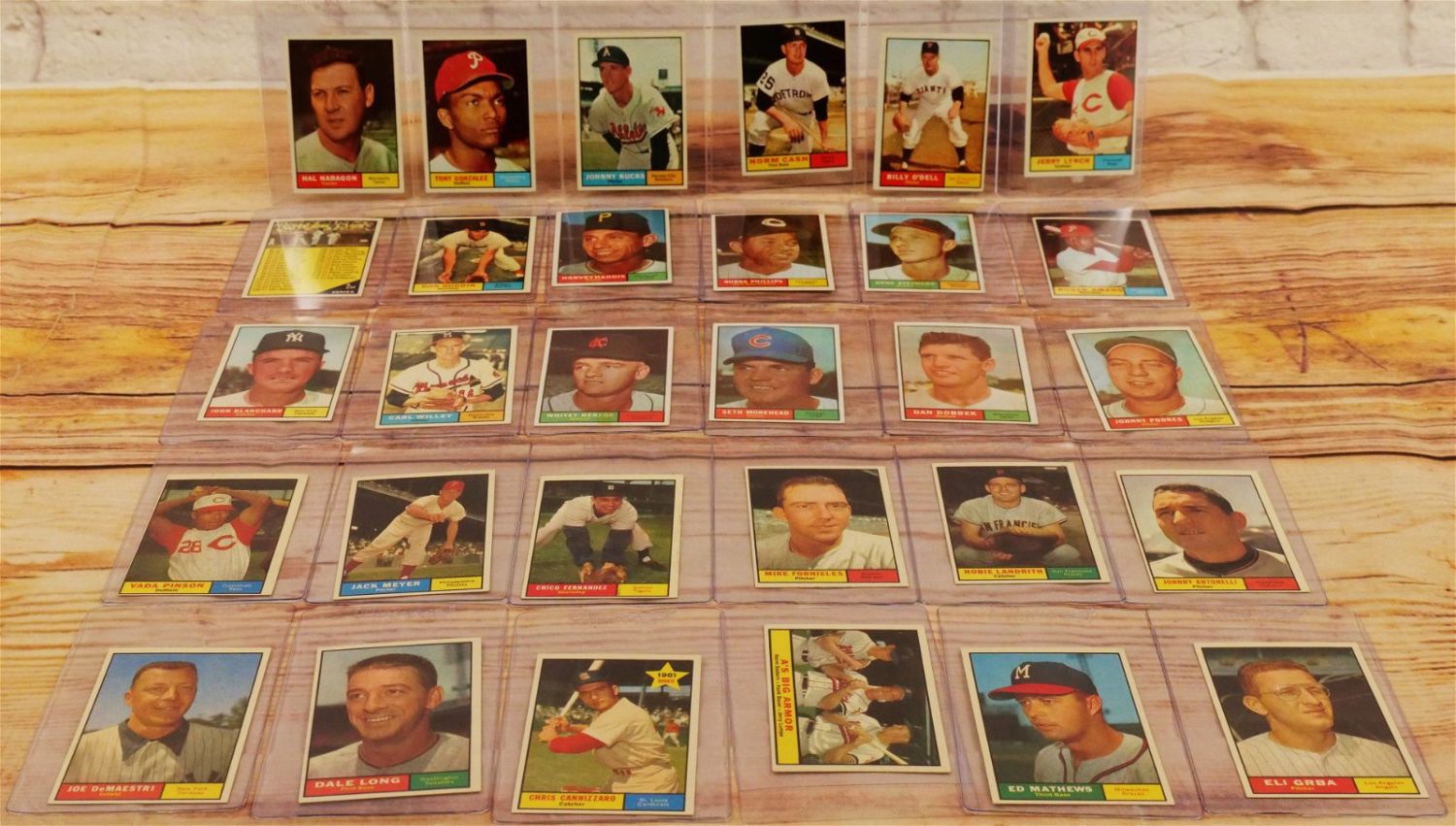 Lot of 30 Topps 1961 Baseball Cards. Including #92-121. All invoices must be paid within 24 hours of the sale. We offer multiple shipping options, the estimate on this page is ONLY the Liveauctioneers Live Ship Option, we also offer Pick-Ups Thursday, Friday, Saturday, and Monday immediately following the sale. BY APPOINTMENT ONLY.