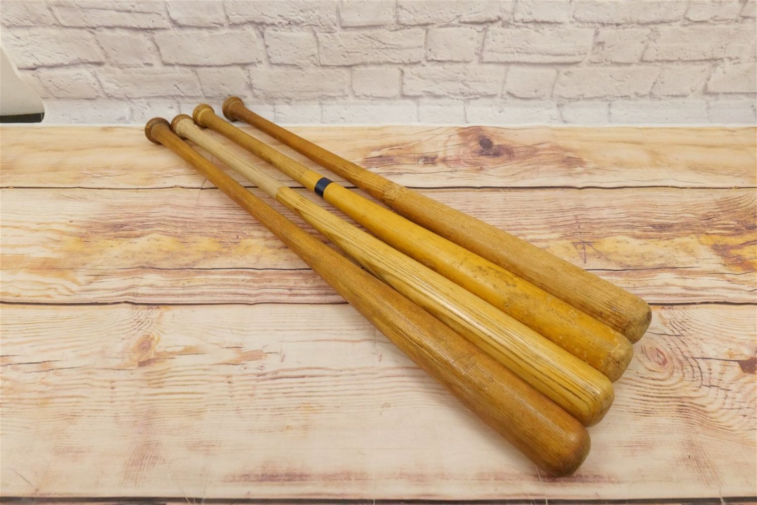 Lot of 4 Adirondack Baseball Bats. Circa 1968-1979. This lot includes Rico Carty Pro Model 212 – Small chip on knob, Willie McCovey Big Stick Personal P302 – Small crack on handle, Kaline Type 302, Willie Mays Personal Model P345. Largest bat measures 35" long All bats are considered to be in used condition. All invoices must be paid within 24 hours of the sale. We offer multiple shipping options, the estimate on this page is ONLY the Liveauctioneers Live Ship Option, we also offer Pick-Ups Thursday, Friday, and , Saturday, and Monday immediately following the sale. BY APPOINTMENT ONLY.