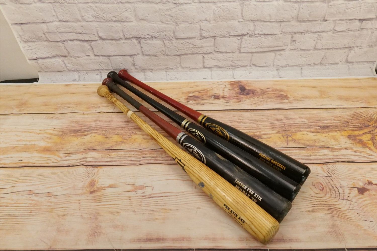 Lot of 4 Easton Sports Bats including Maple 72 Pro Stock, Pro Stix 243 Stubby Clapp Cleveland Indians, Redline Baseball Pro Stix M267 and All Black Bat with cracking on handle that does not seem to go all the way through. Largest bat measures 33.5" long. All bats are considered to be in used condition. All invoices must be paid within 24 hours of the sale. We offer multiple shipping options, the estimate on this page is ONLY the Liveauctioneers Live Ship Option, we also offer Pick-Ups Thursday, Friday, Saturday, and Monday immediately following the sale. BY APPOINTMENT ONLY.