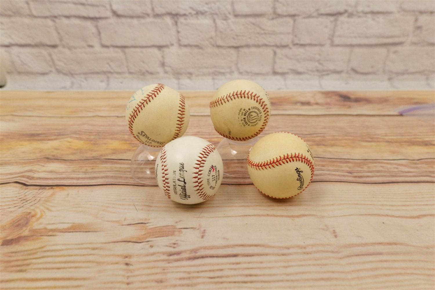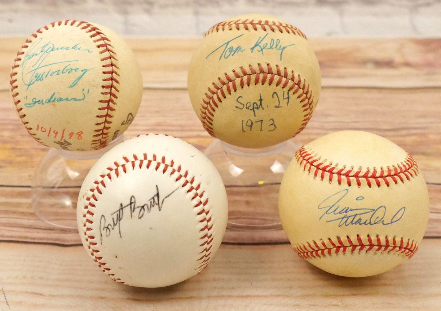 Lot of 4 Autographed Baseballs including Juan Marichal, Tom Kelly, John Burkett with other Unknown, and Jeff Torberg. Balls have some wear and staining. Estate Find – No COA’s – Unverified. All invoices must be paid within 24 hours of the sale. We offer multiple shipping options, the estimate on this page is ONLY the Liveauctioneers Live Ship Option, we also offer Pick-Ups Thursday, Friday, Saturday, and Monday immediately following the sale. BY APPOINTMENT ONLY.
