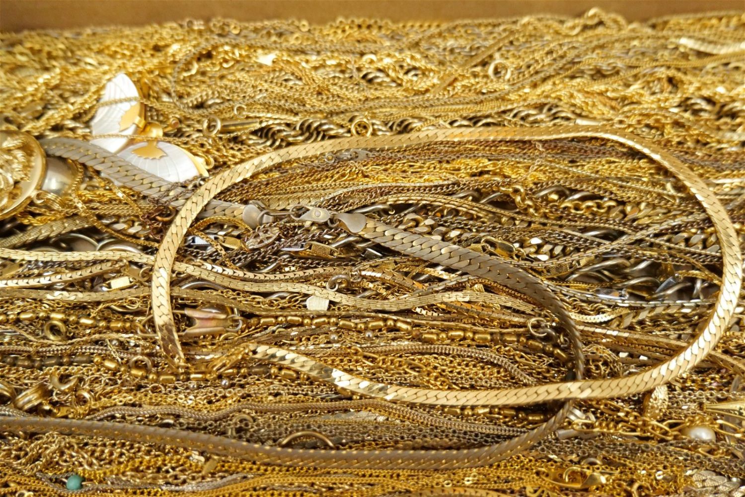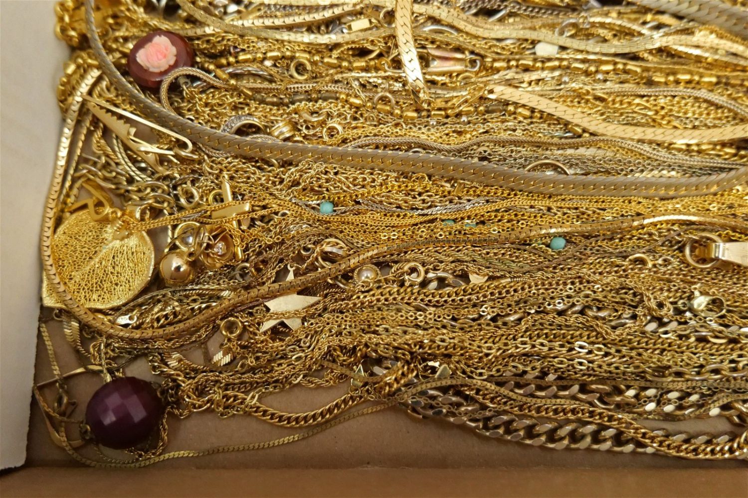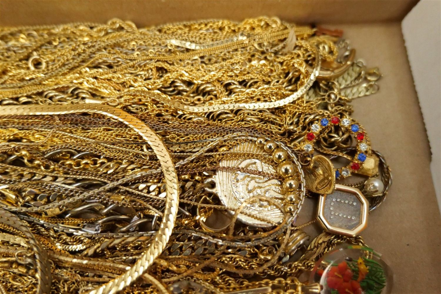 Large Lot of Gold Tone Chains. All different link styles. Some have pendants. All invoices must be paid within 24 hours of the sale. We offer multiple shipping options besides the Liveauctioneers Liveship quoted on this listing., We also offer Pick-Ups Friday, Saturday, and Monday immediately following the sale. BY APPOINTMENT ONLY.