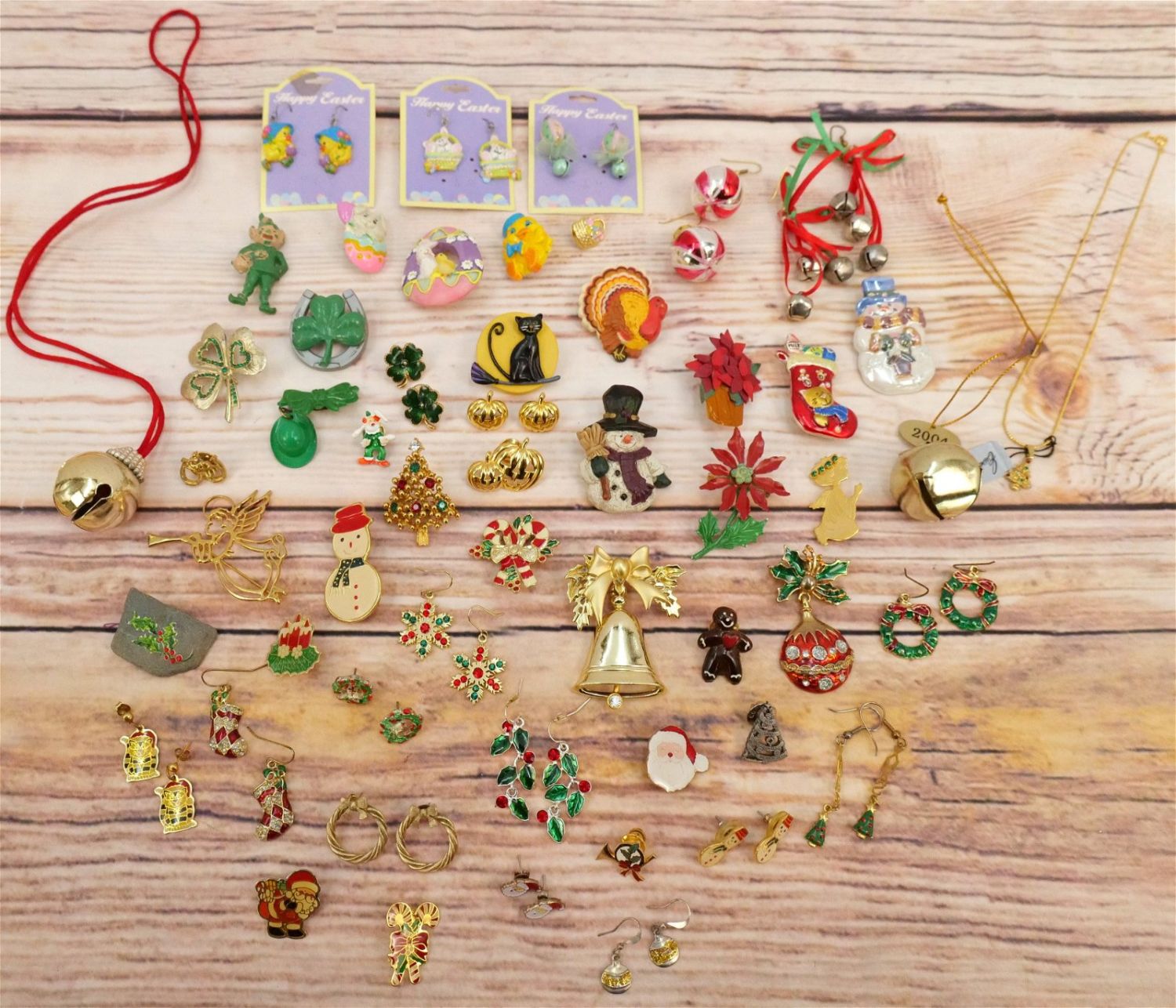 Mixed Lot of Holiday Jewelry. Mostly Christmas – Jingle Bells, Wreath. Also including Easter, St. Patty’s Day and More. All invoices must be paid within 24 hours of the sale. We offer multiple shipping options besides the Liveauctioneers Liveship quoted on this listing., We also offer Pick-Ups Friday, Saturday, and Monday immediately following the sale. BY APPOINTMENT ONLY.