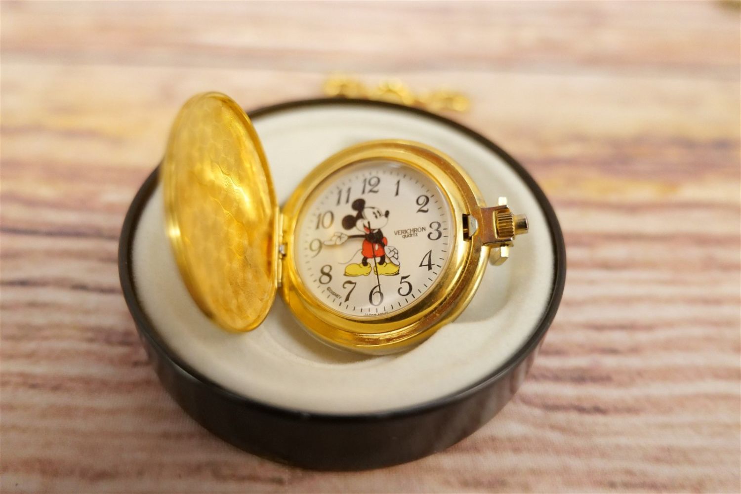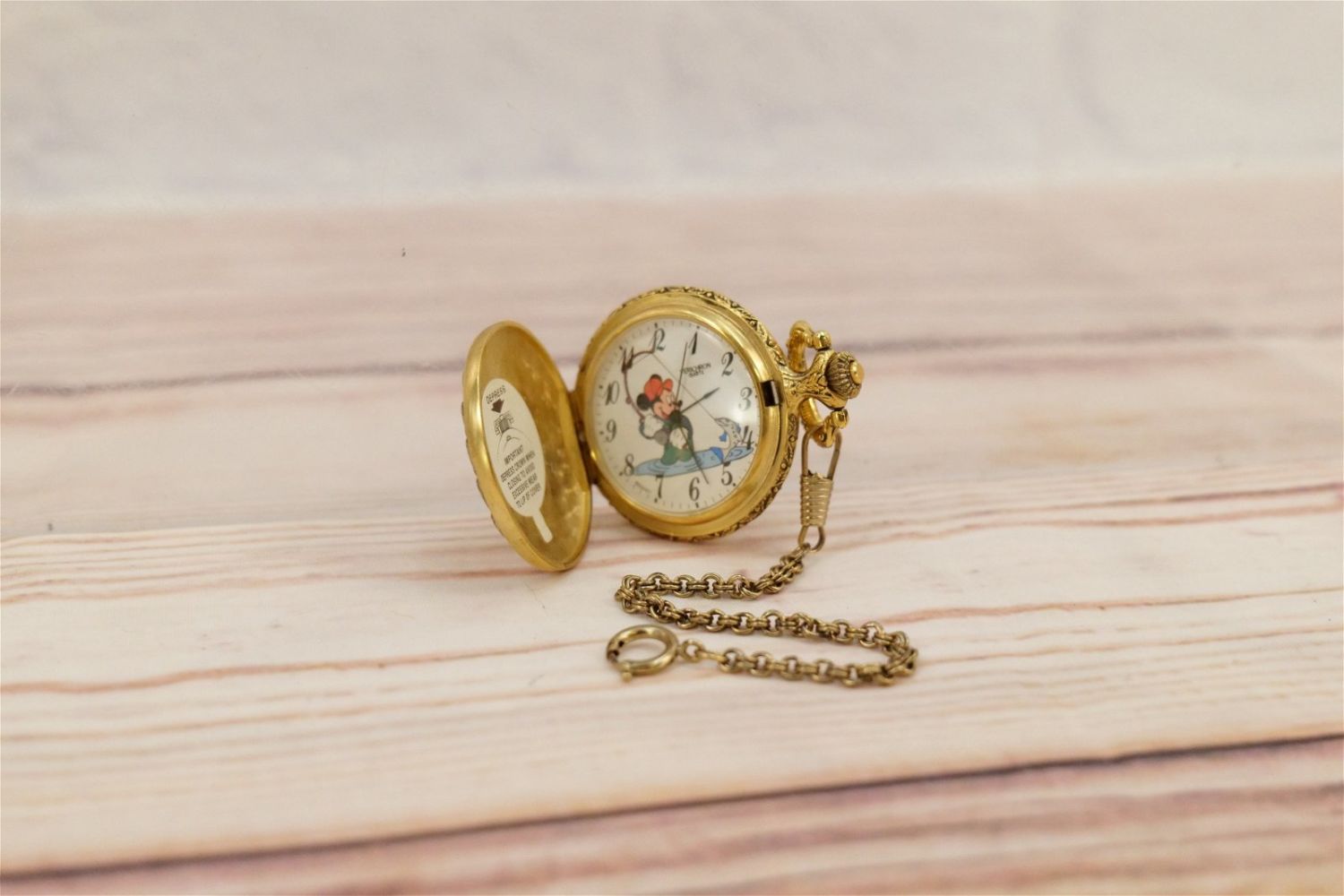 Lot of 4 Disney Verichron Pocket Watches including Mickey in Tin Case, Mickey Fishing, Classic Mickey and Mickey on Train. All invoices must be paid within 24 hours of the sale. We offer multiple shipping options besides the Liveauctioneers Liveship quoted on this listing., We also offer Pick-Ups Friday, Saturday, and Monday immediately following the sale. BY APPOINTMENT ONLY.