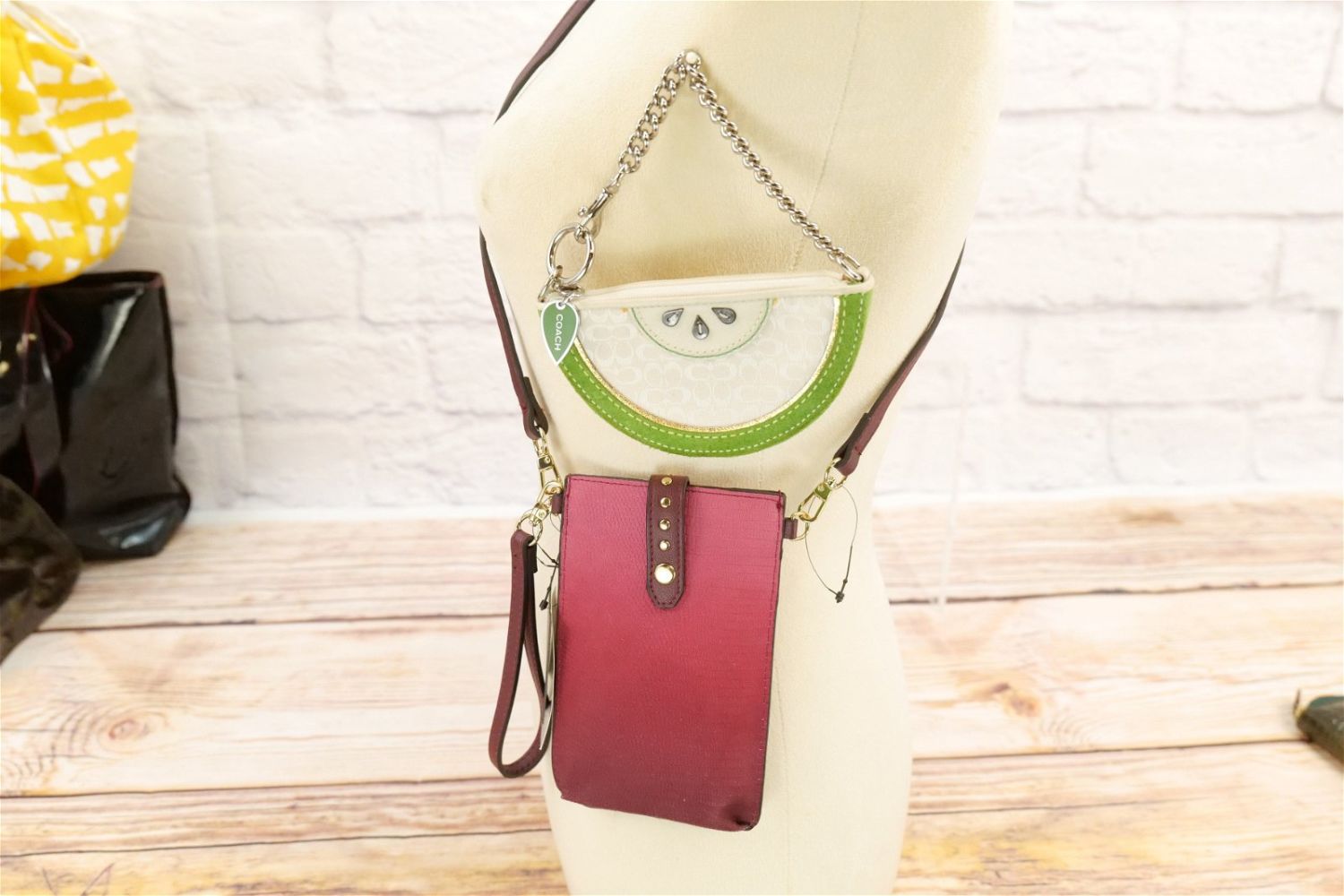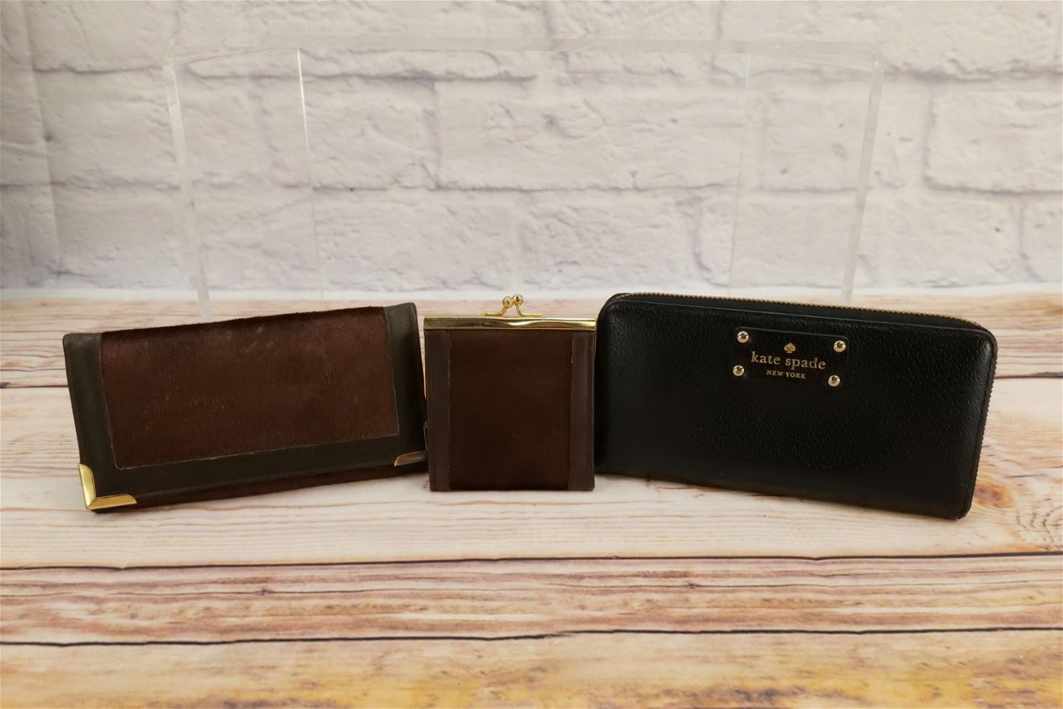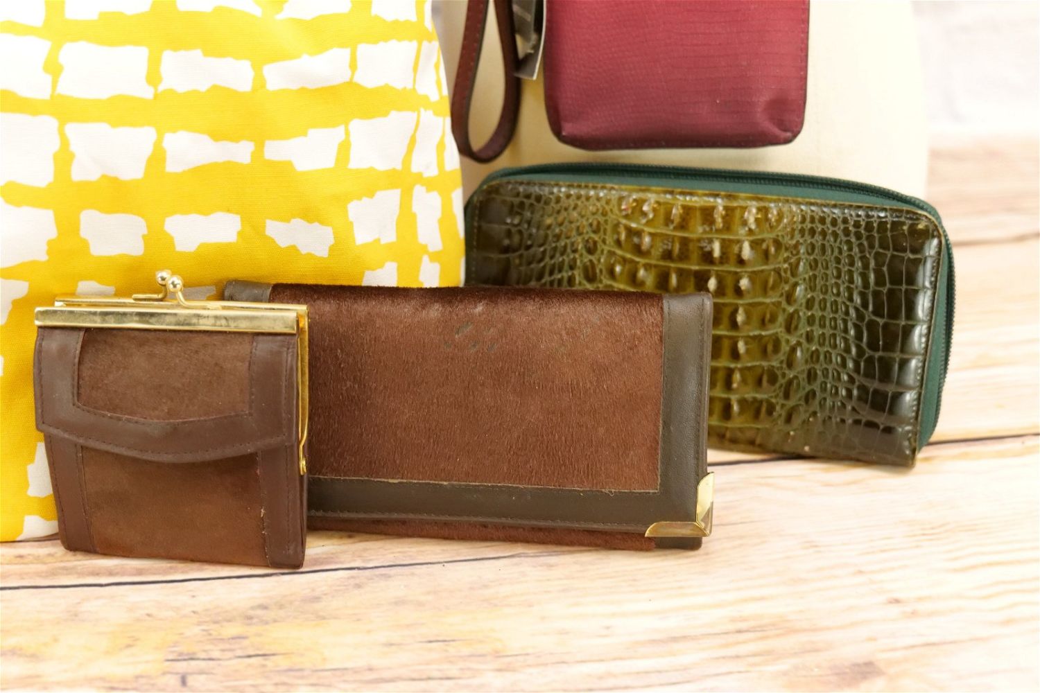 Lot of Ladies Handbags and Wallets including Saks 5th Avenue Yellow Scrunch Bag, Pleather Stephanie Johnson for Saks 5th Avenue Bag, Amber Colored Clear Bag, Kate Spade Wallet, Coin Purses and More. All invoices must be paid within 24 hours of the sale. We offer multiple shipping options besides the Liveauctioneers Liveship quoted on this listing., We also offer Pick-Ups Friday, Saturday, and Monday immediately following the sale. BY APPOINTMENT ONLY.